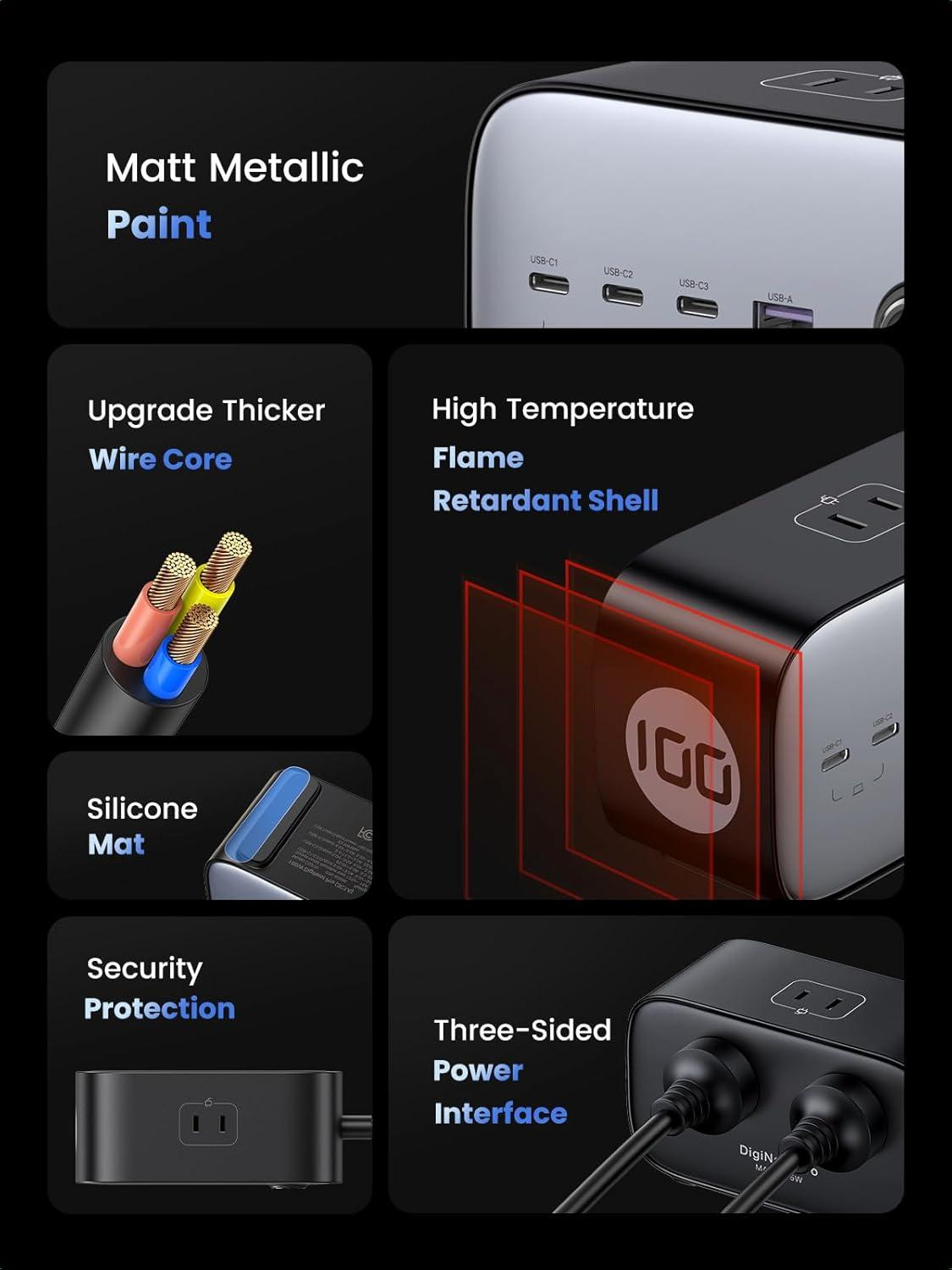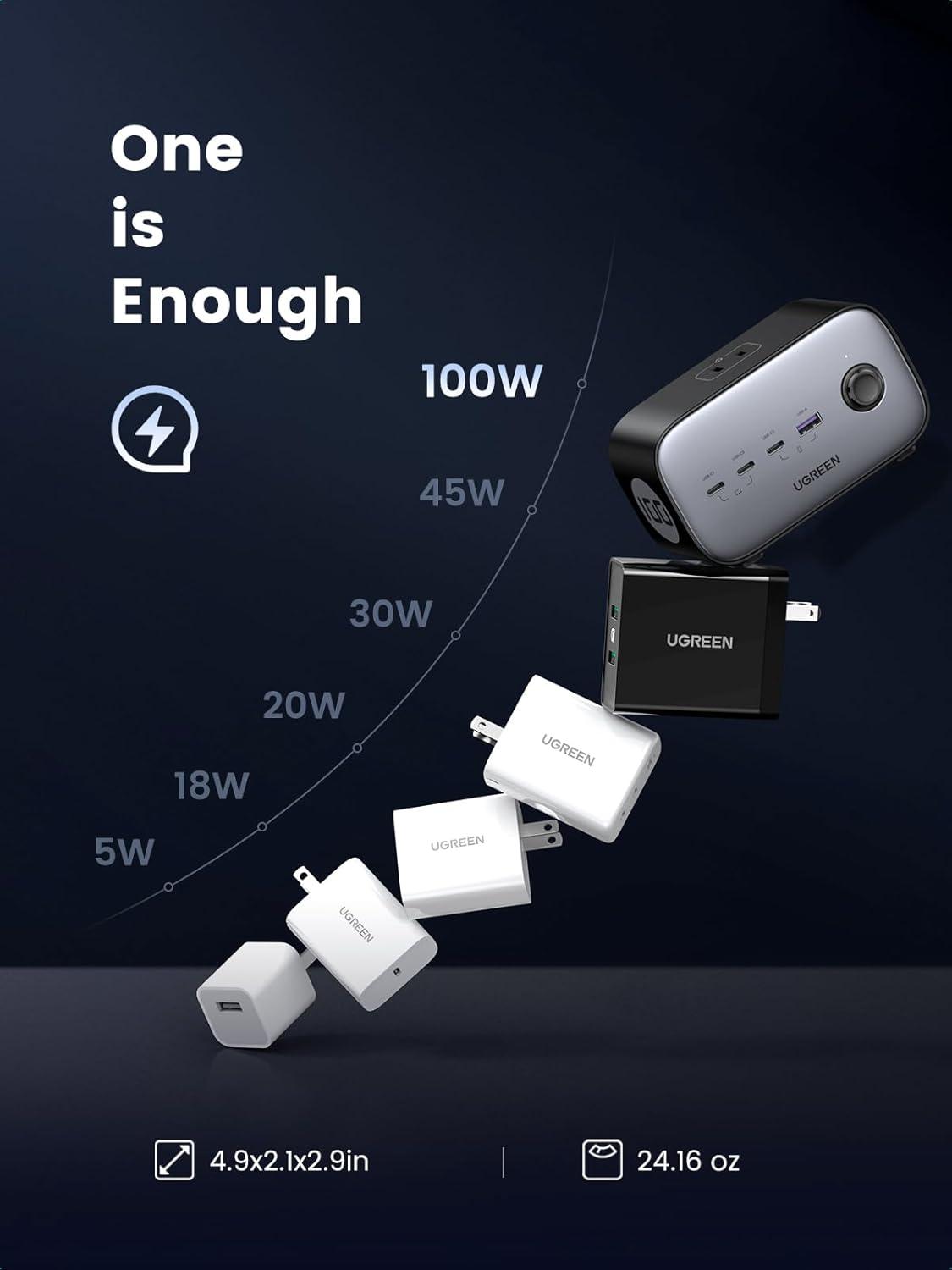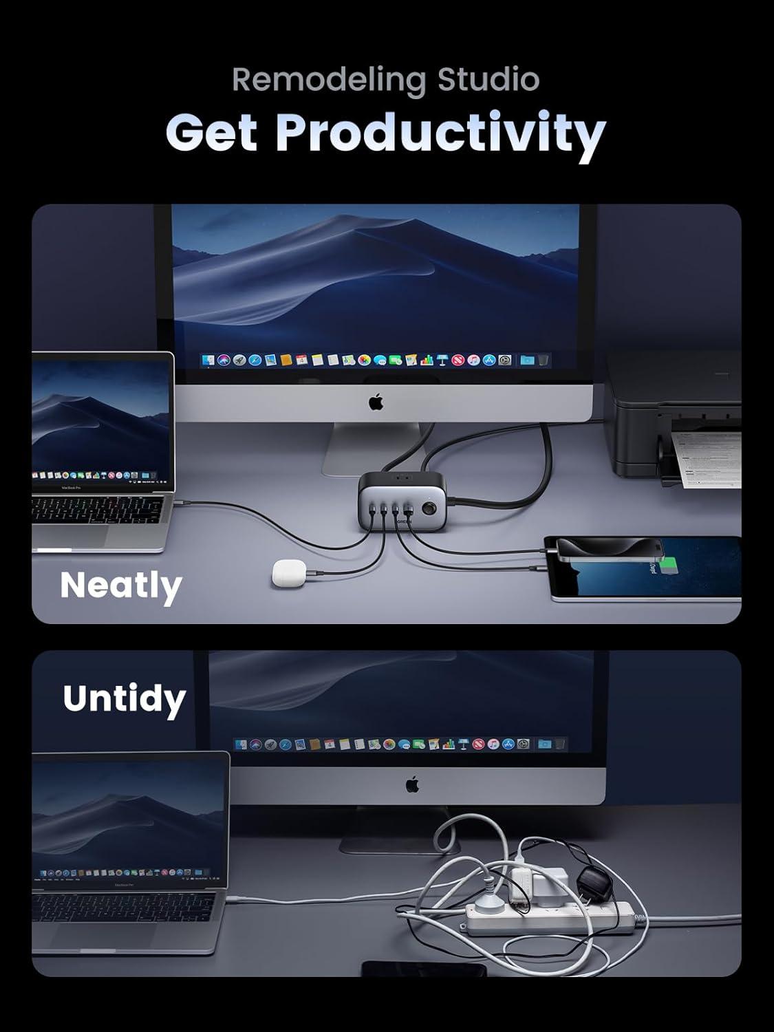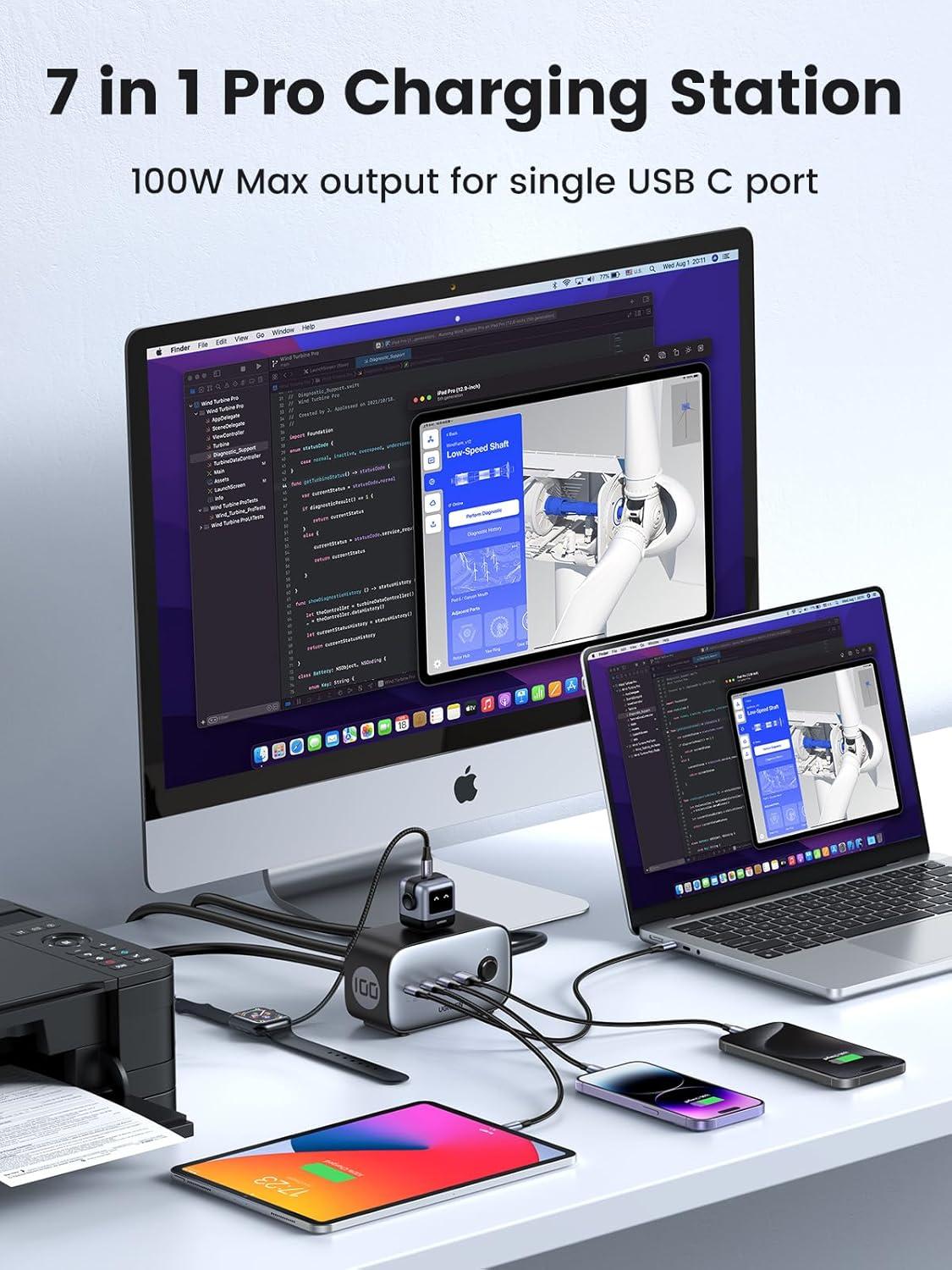 UGREEN 100W USB-C Charging Station with AC Outlet, Nexode 7-in-1 GaN Power Strip for Home and Office, with 3 AC, 3 USB C & 1 USB A, 6ft Extension Cord, for MacBook Pro/Air, iPad, iPhone 17, Galaxy S25