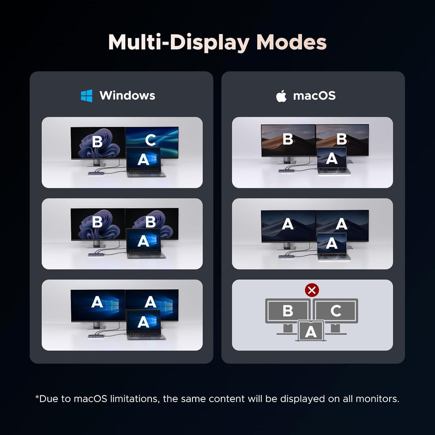 4K 120Hz Dual Monitor Productivity Unlock high-refresh workflows with DP 1.4 (4K@120Hz) + HDMI 2.0 (4K@60Hz) – simultaneously drive two external displays alongside your laptop screen.Windows MST Mode: Triple-screen workspace (e.g., laptop + DP display + HDMI display) with independent content. Mac Extended Desktop: Dual external displays at 4K@60Hz max (SST mode limitation).16.2Gbps bandwidth + DSC compression enables ultrawide 3440×1440@180Hz for financial charts/CAD with near-zero latency.