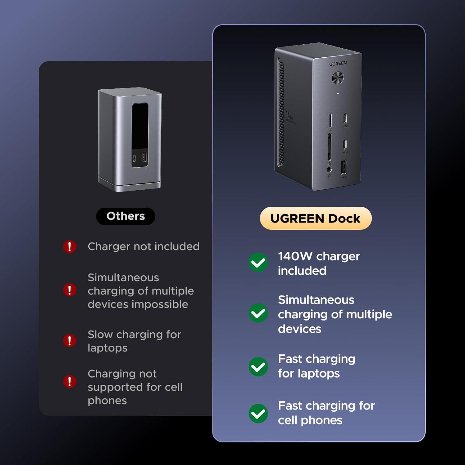 UGREEN 14 in 1 USB C Docking Station 3 Monitors Revodok Pro 314 with 8K DP/4K HDMI, 100W PD, 10Gbps USB Ports, Gigabit Ethernet, SD/TF 170MB/s, 3.5mm Audio, 90cm Cable.140W Power Adapter (2HDMI & DP)(2DP+HDMI)