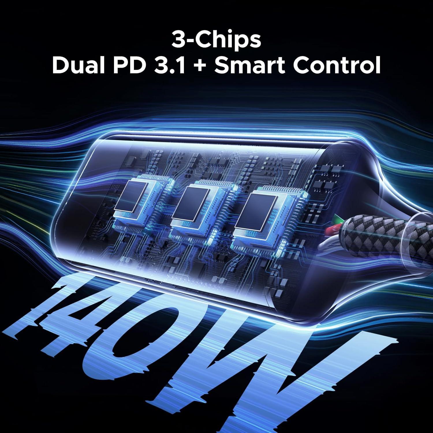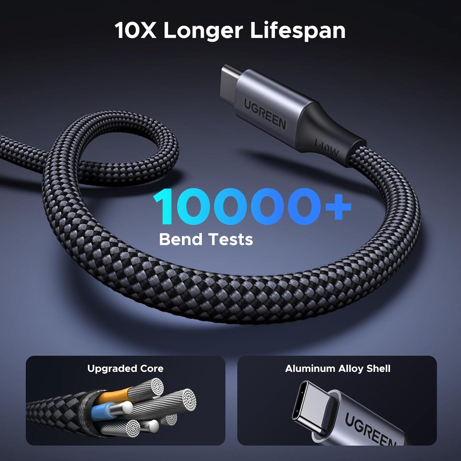 Durable and Long Lasting: With tough nylon braided material and Aluminum alloy shell, this 140W USB C cable can achieve over 10,000+ bend tests, providing a reliable feeling of use. Tangle-free design makes it easy to pack and store