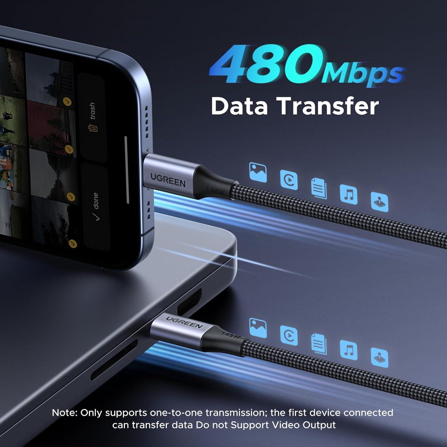 UGREEN 140W USB C Cable, 5FT 2-in-1 USB C to USB C Cable, Fast Charging for iPhone 17/17 Pro Max/16/15 Series, Galaxy S25/S24/S23 Series, MacBook Air/Pro, iPad Pro/Air, Steam Deck, and More(6.6FT)