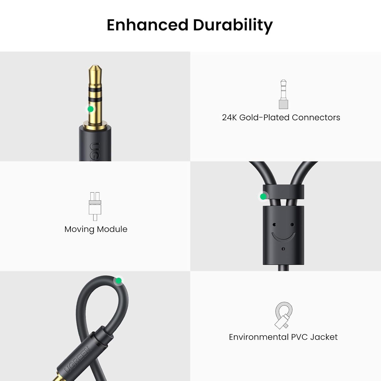 Excellent Sound Quality: With dual-shielding connector and tinned-plated copper core, UGREEN Aux to RCA female cable would give you completely pure, clean, zero interference sound quality. Just enjoy the premium sound experience with seamlessly transmit stereo audio adapter