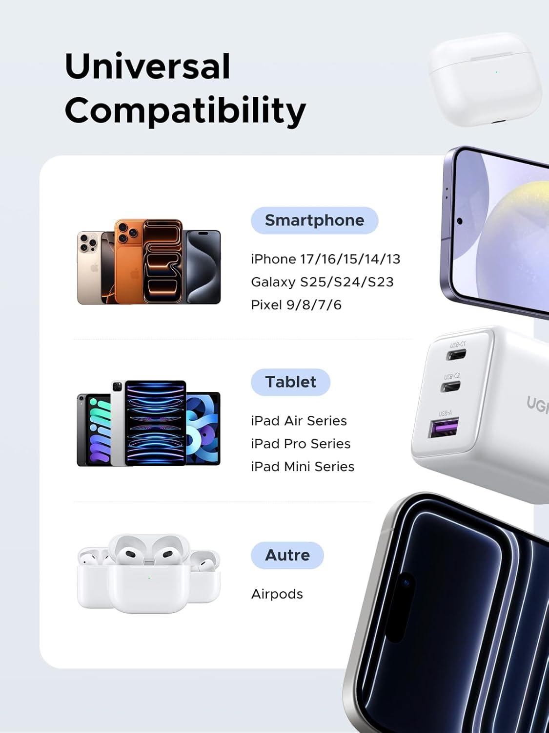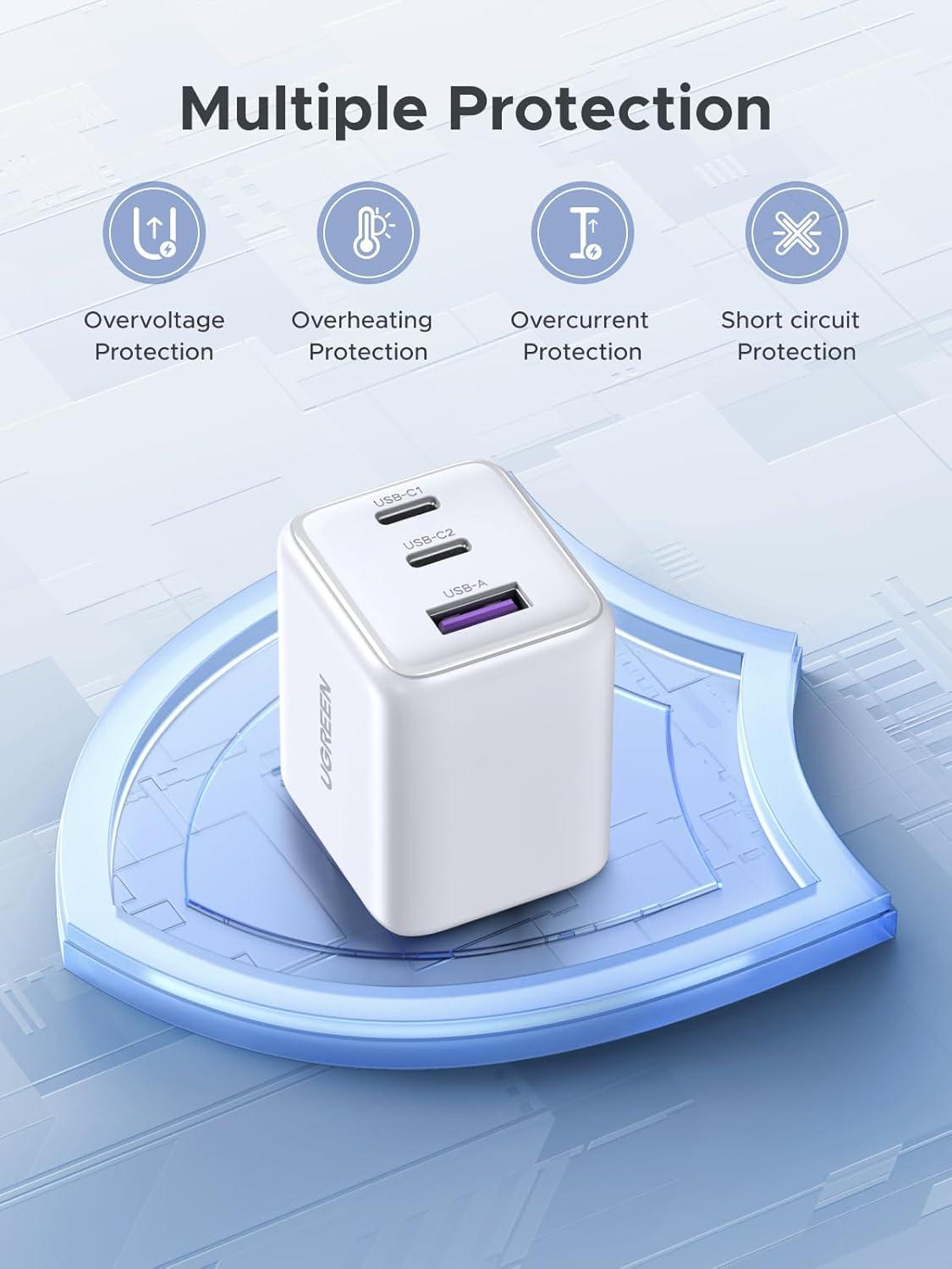 Faster & Cooler Choice: This UGREEN USB C Charger Block supports a max power transmission of 30W. Within 30 minutes, it can charge your iPhone 17 or Galaxy S25 to about 60%. Not only that, the Always-On Temperature Detection also ensures that it will not overheat during the fast charging process.
