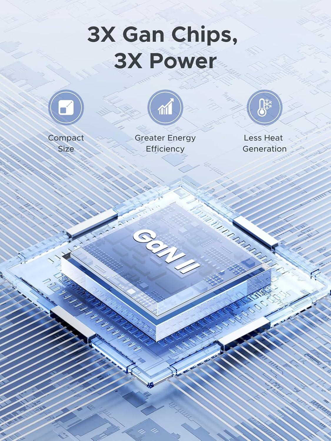 Real safety is safe inside and out: The charger features an upgraded GaN II chip, offering efficient heat dissipation and faster response to over-voltage, over-current, and short-circuit protection. Its casing is made of flame-retardant matte PC material, ensuring complete safety both inside and out for this compact charger.