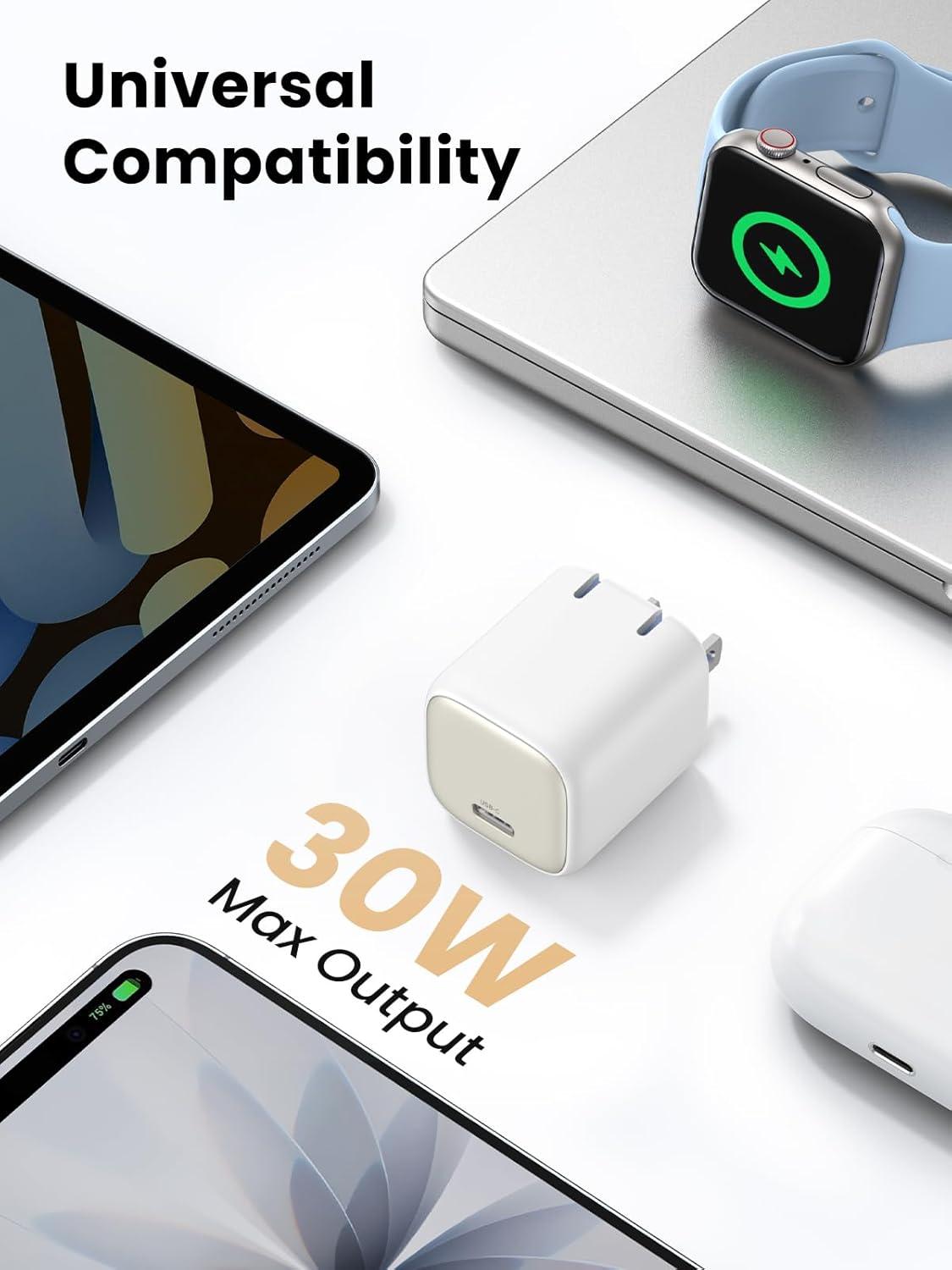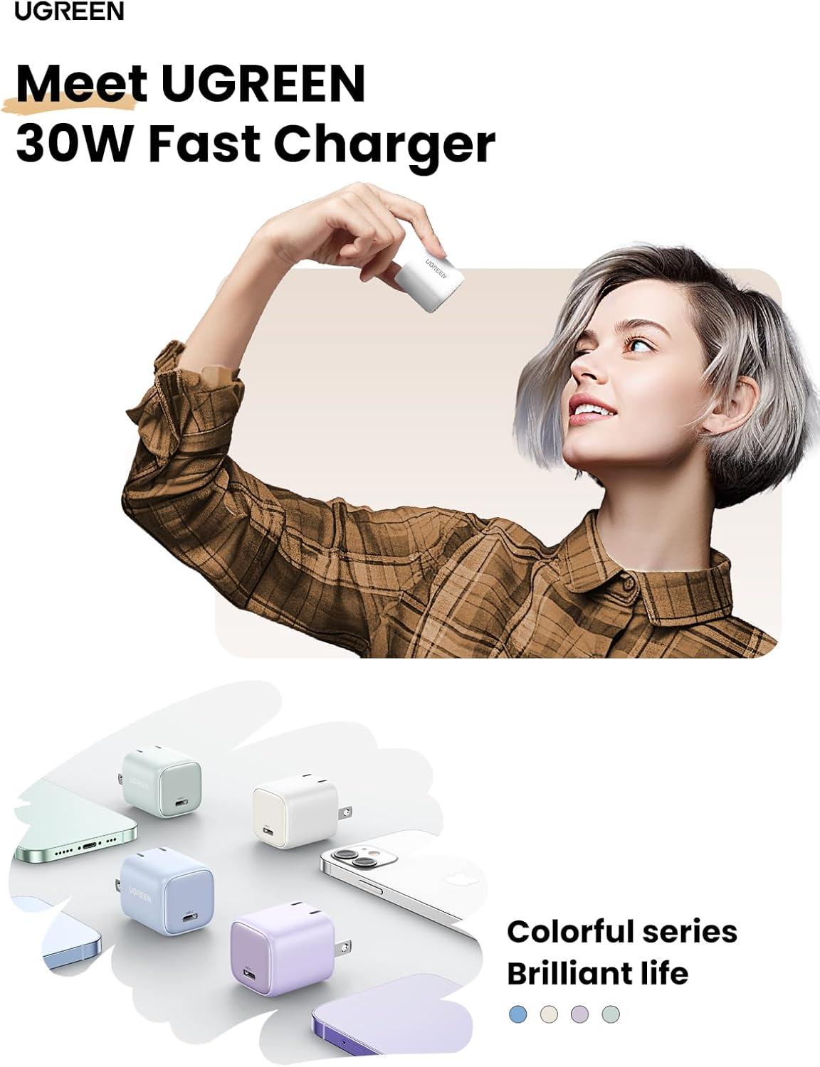 UGREEN 30W USB C Charger for iPhone 17, Nexode Foldable GaN PPS Compact Fast Wall Charger Block, USB-C Power Adapter for iPhone 17/16/15/14, Galaxy S25/S24/S23/S22 (Black)(White)