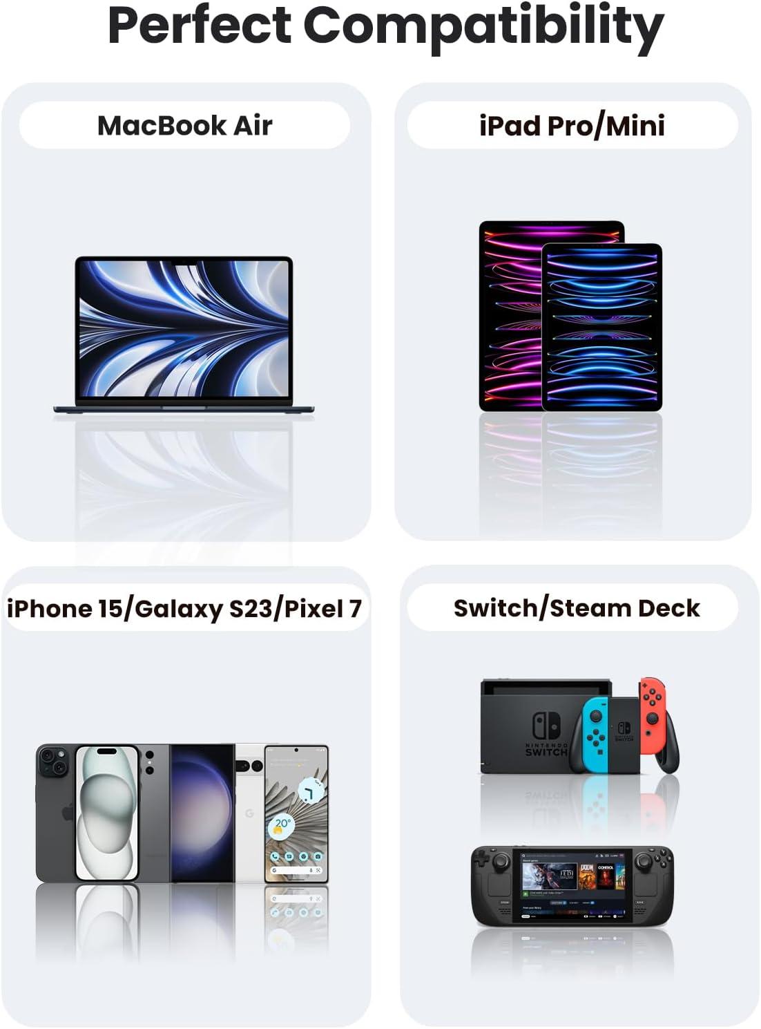 Wide Compatibility: The 60W USB C cable is compatible with iPhone 15/15 Plus/15 Pro, Samsung Galaxy S24/S23/S22, Google Pixel 7, iPad Pro 2021/Mini 6/Air 5, MacBook Air, Surface Go and et