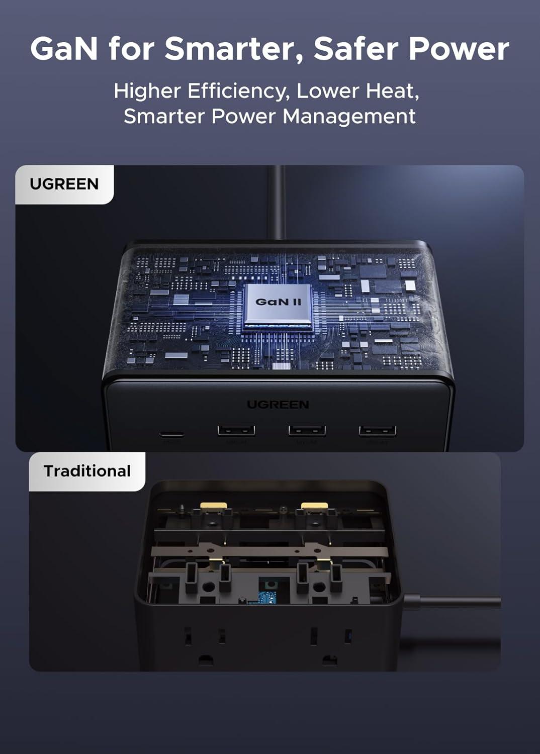 UGREEN 8-in-1 GaN Power Strip + 100W USB-C Cable (2-Pack) Bundle — Fast Charging Station with 4 AC Outlets & 4 USB Ports + High-Speed USB-C Cable for Laptop, Phone & Tablet