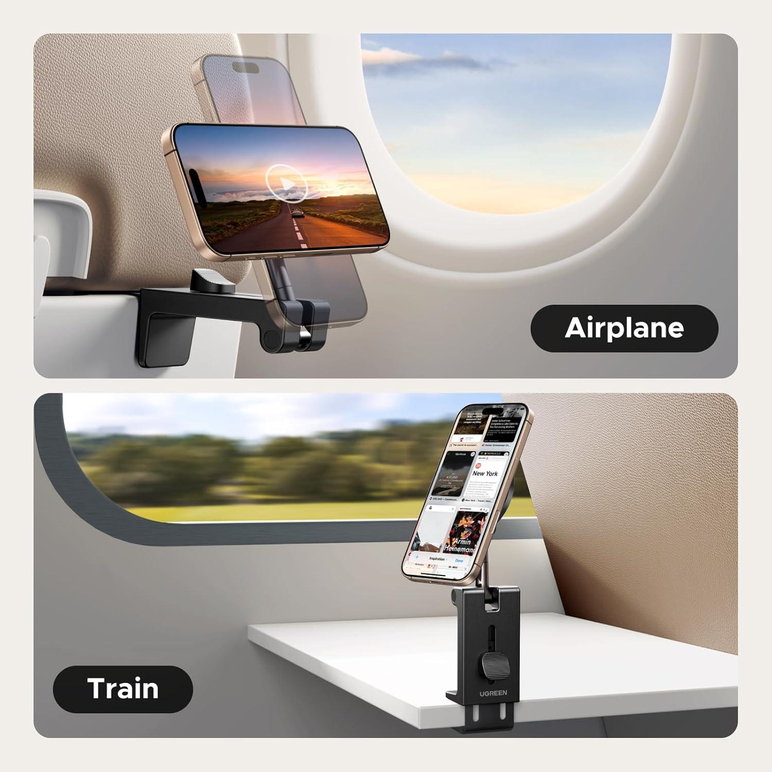 UGREEN Airplane Phone Holder for Magsafe Air Plane Travel Essentials Magnetic Phone Mount Compatible with iPhone 17 Air 16 15 14 Plus 13 12 Pro Max Mini Magsafe Case, Handsfree for Long Flight Flying