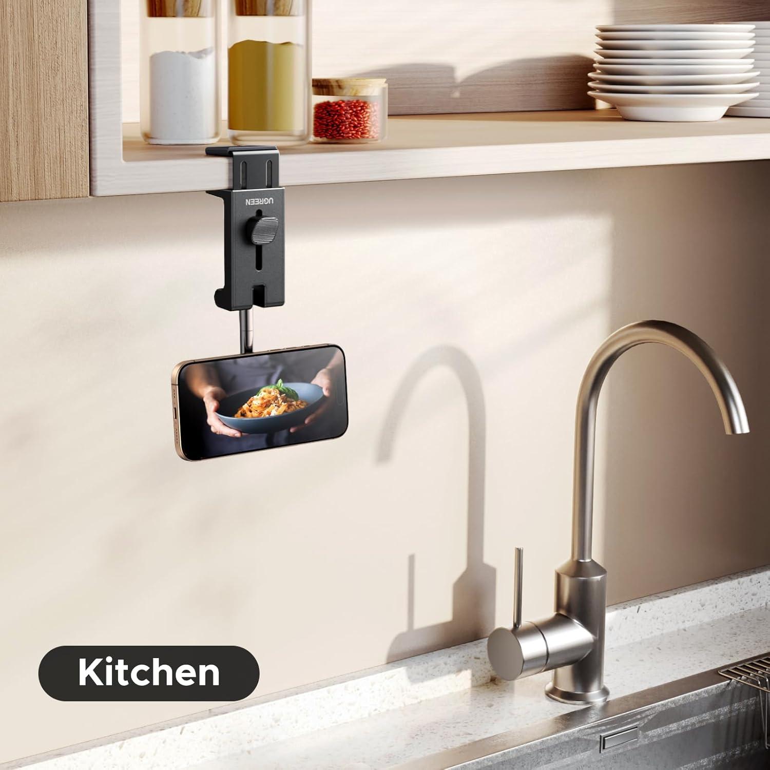 Universal Wide-Grip Clip: the clamp distance of this airplane phone holder is 8-25mm. Securely mounts on plane trays, kitchen cabinets, camping or coffee tables etc. Perfect for travel, home, and outdoor use