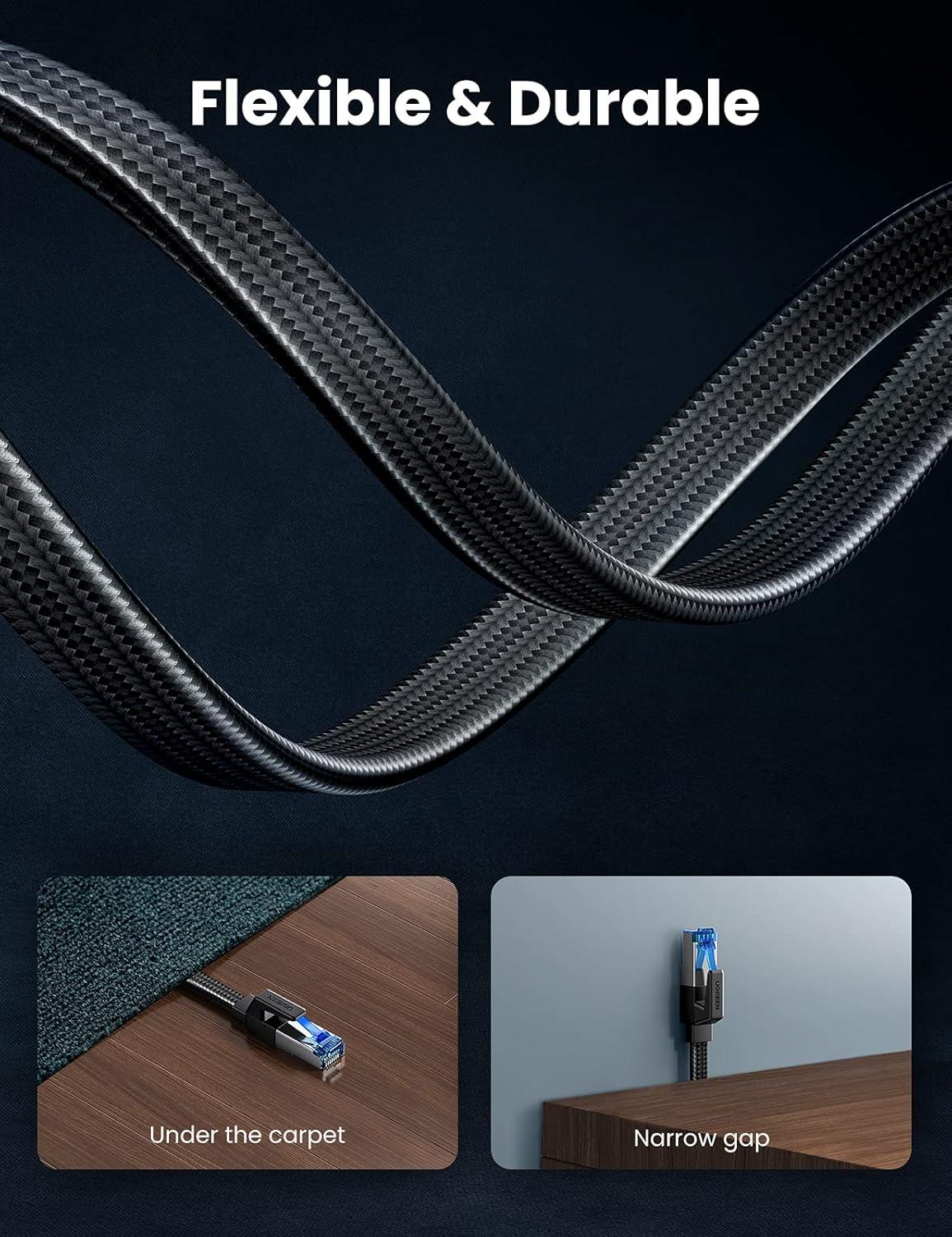 Durable Braided Design: UGREEN Cat 8 Flat Ethernet cable wrapped with quality cotton braided cord, which makes the LAN cable stronger and more durable. The test proves that this internet cable can be bent at least 10000 times without broken, very suitable for long-term use.