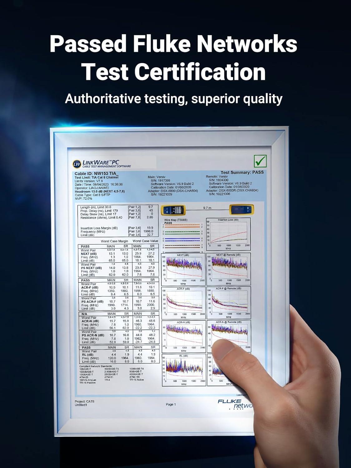 40 Gbps 2000 Mhz High Speed: The Cat 8 Ethernet cable support max.40 Gbps data transfer and 2000 MHz Brandwith, ideal for gaming and streaming, greatly improving upload and download speed, sound, image and resolution quality