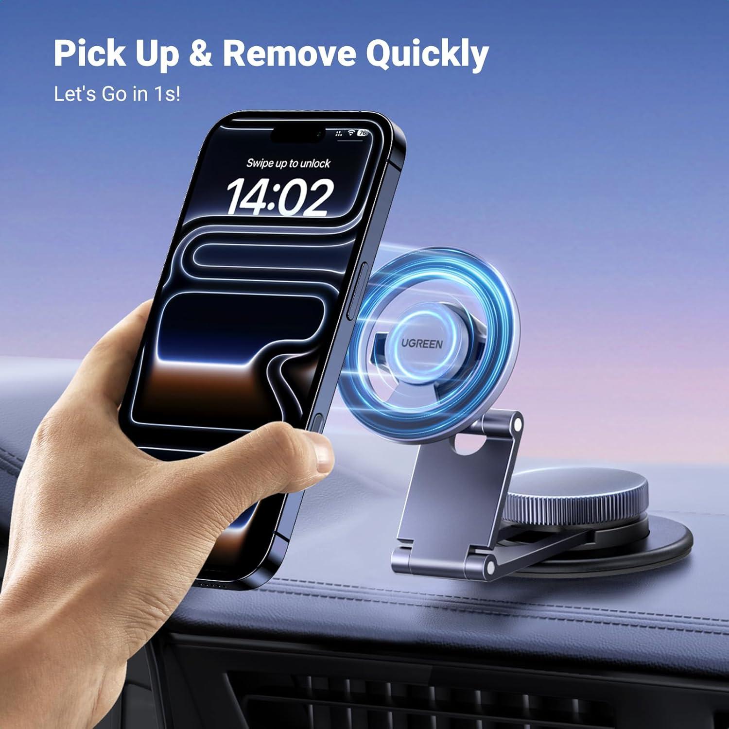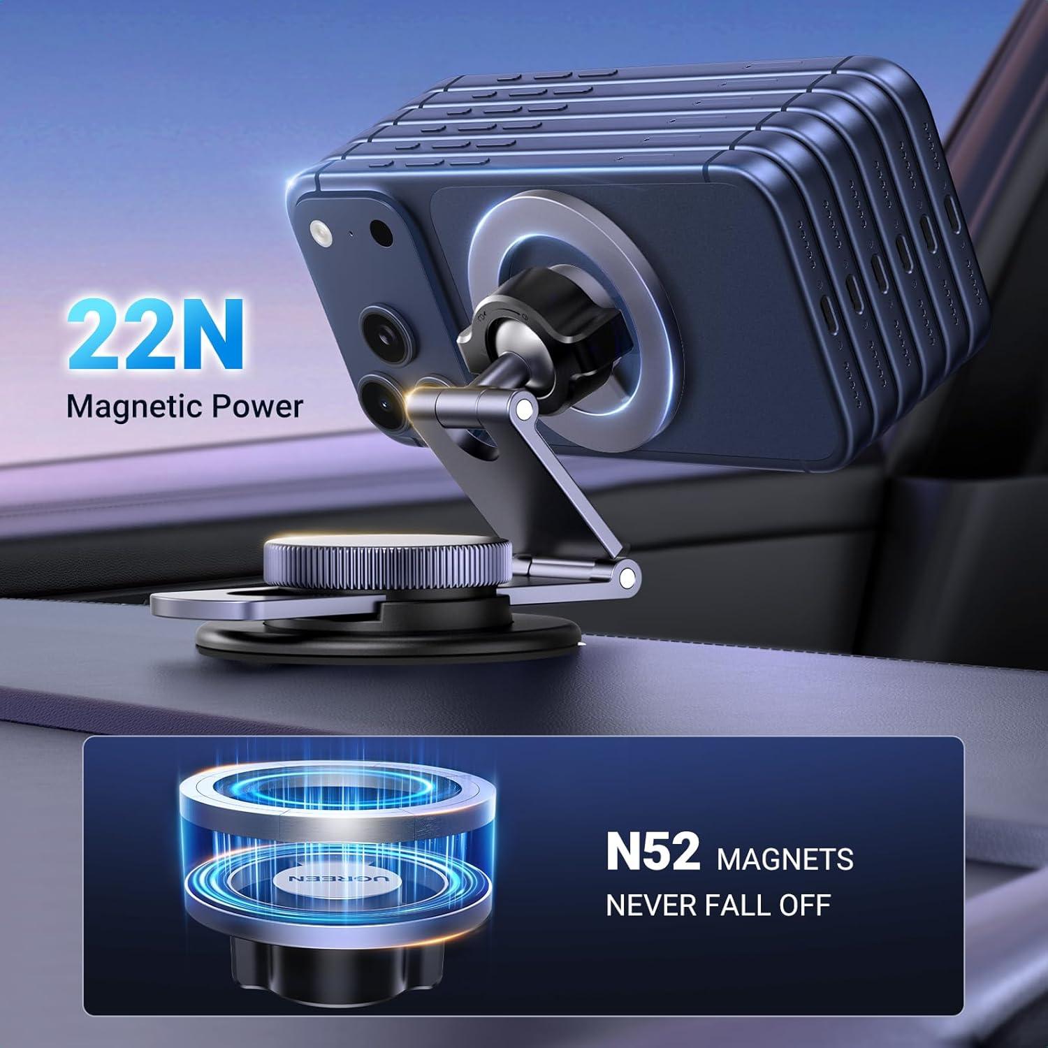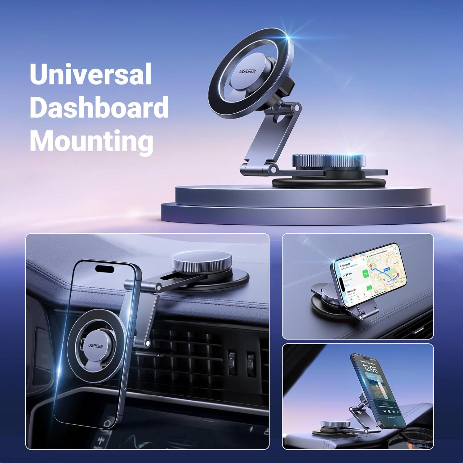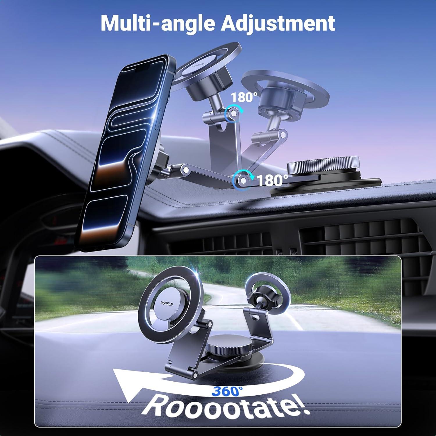 UGREEN for Magsafe Car Mount 360° Rotation Magnetic Phone Holder Dashboard Car Cellphone Holder Compatible with iPhone 17 16 15 14 13 12 Series and MagSafe Case