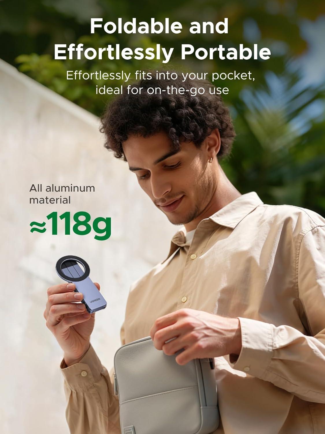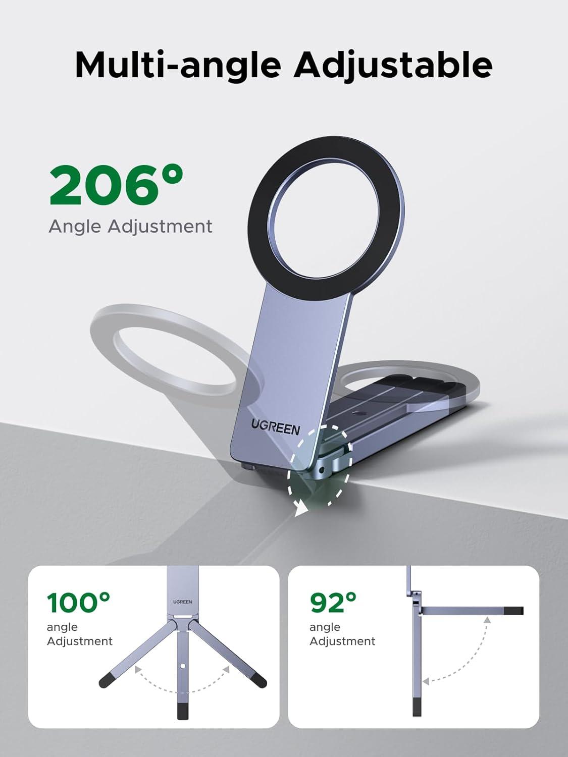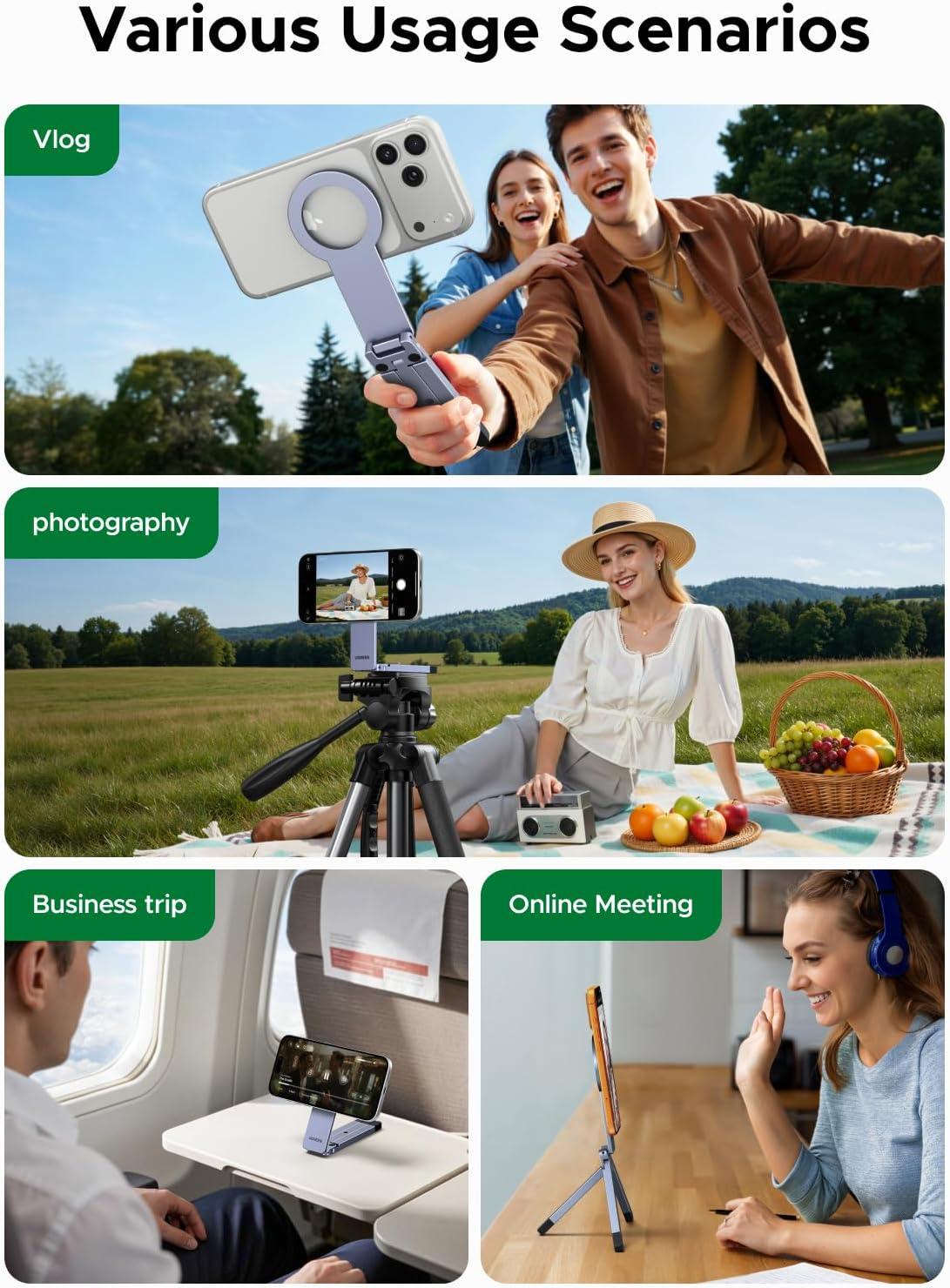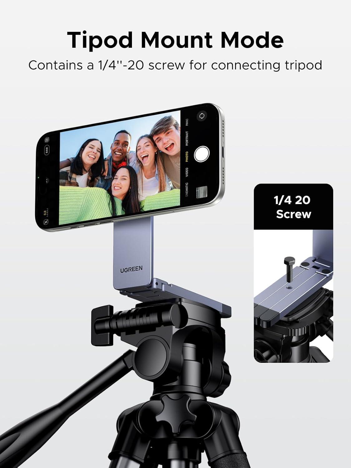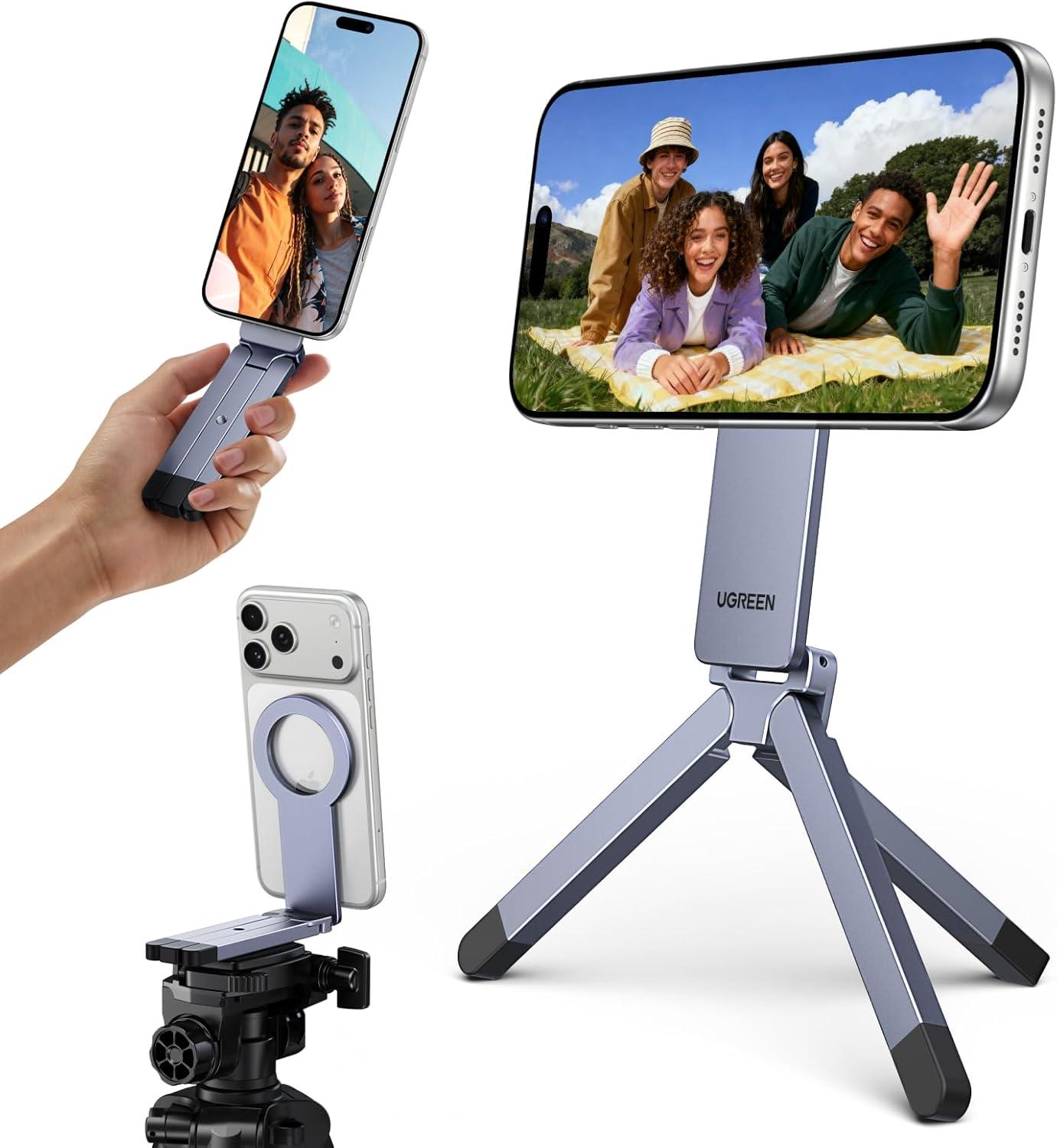 UGREEN for Magsafe Tripod 360° Rotating Adjustable Magnetic Phone Stand for 1/4” Screw Port Compatibility with iPhone 17 16 15 14 13 12 Pro Max Air, Cell Phone StandTravel Essentials Accessories