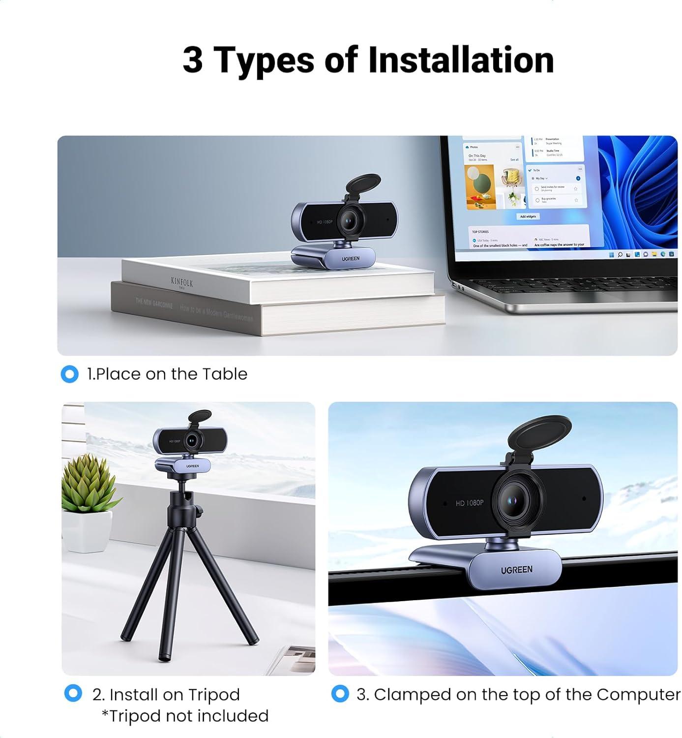 Built-in 2 Noise-Cancelling Microphones: UGREEN webcam for PC comes with built-in dual microphones that can pick up sound from up to 10ft. The computer camera features 2D digital noise reduction, which filters out environmental noise to ensure clear audio during video calls or recordings, making every call more natural and clear