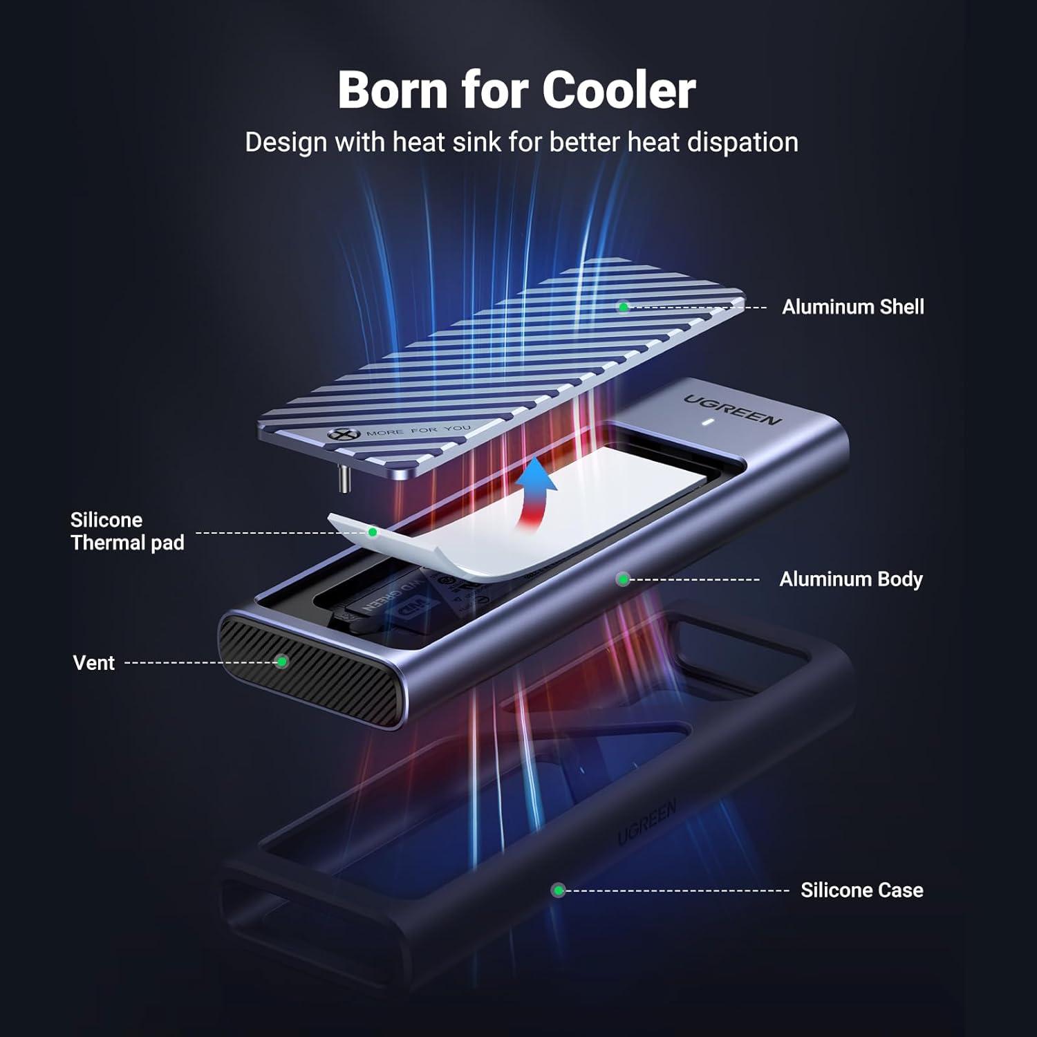 UGREEN M2 NVMe SSD Enclosure USB 3.2 Gen 2 10Gbps PCIe 2230 2242 2260 2280 Support UASP Trim Two Cables No Tools Included