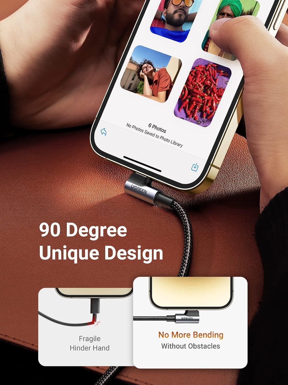 UGREEN MFi Certification Lightning Cable – 90 Degree USB C to Lightning Cable 6FT Compatible with iPhone 14/14 Pro/14 Pro Max, iPhone 13/12/11/X/XR/XS/8 Series, iPad, AirPods Pro(6FT)