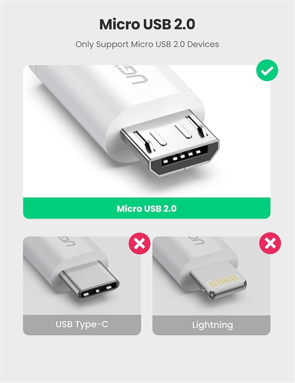 UGREEN Micro USB 2.0 OTG Cable On The Go Adapter Male Micro USB to Female USB Compatible with Samsung Phone S7 S6 Edge S4 S3 LG G4 Controller Android Windows Smartphone Tablets 4 Inch Black(White)