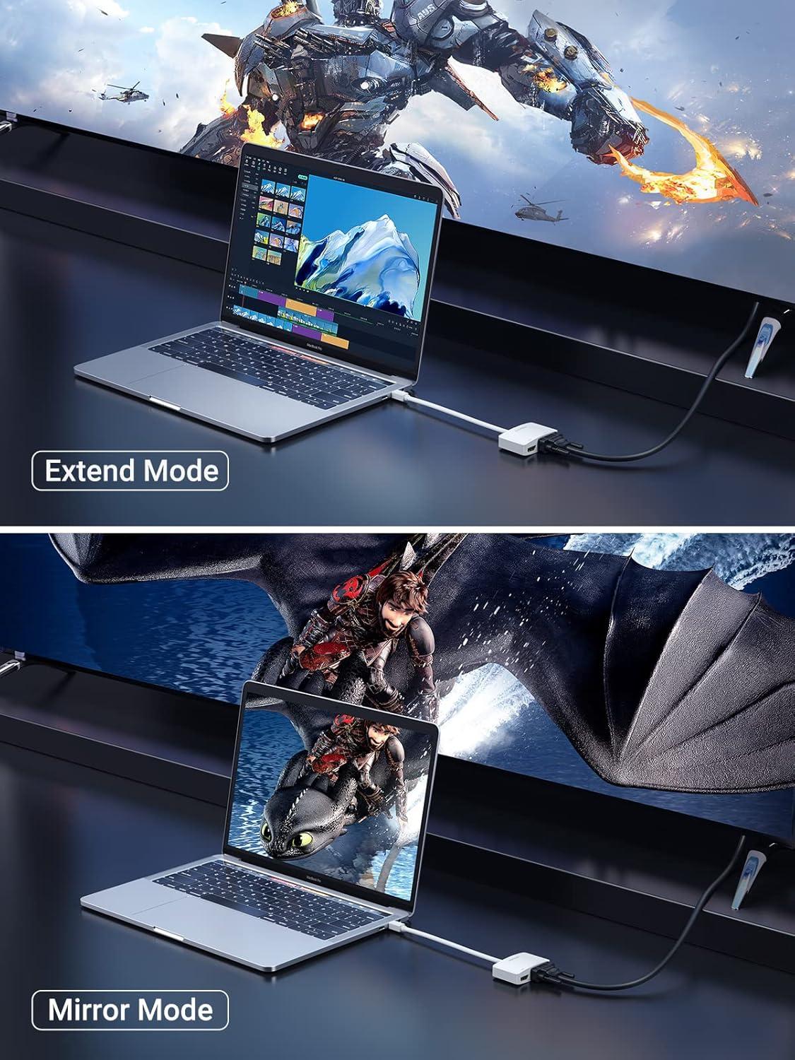 Mirror and Extend Modes: This UGREEN Mini DisplayPort to HDMI VGA adapter converter supports Mirror and Extend modes, ideal for sharing information in an office or at a meeting under mirror mode; and good choice for extending a workstation and showing a different screen on a laptop and display under extend mode