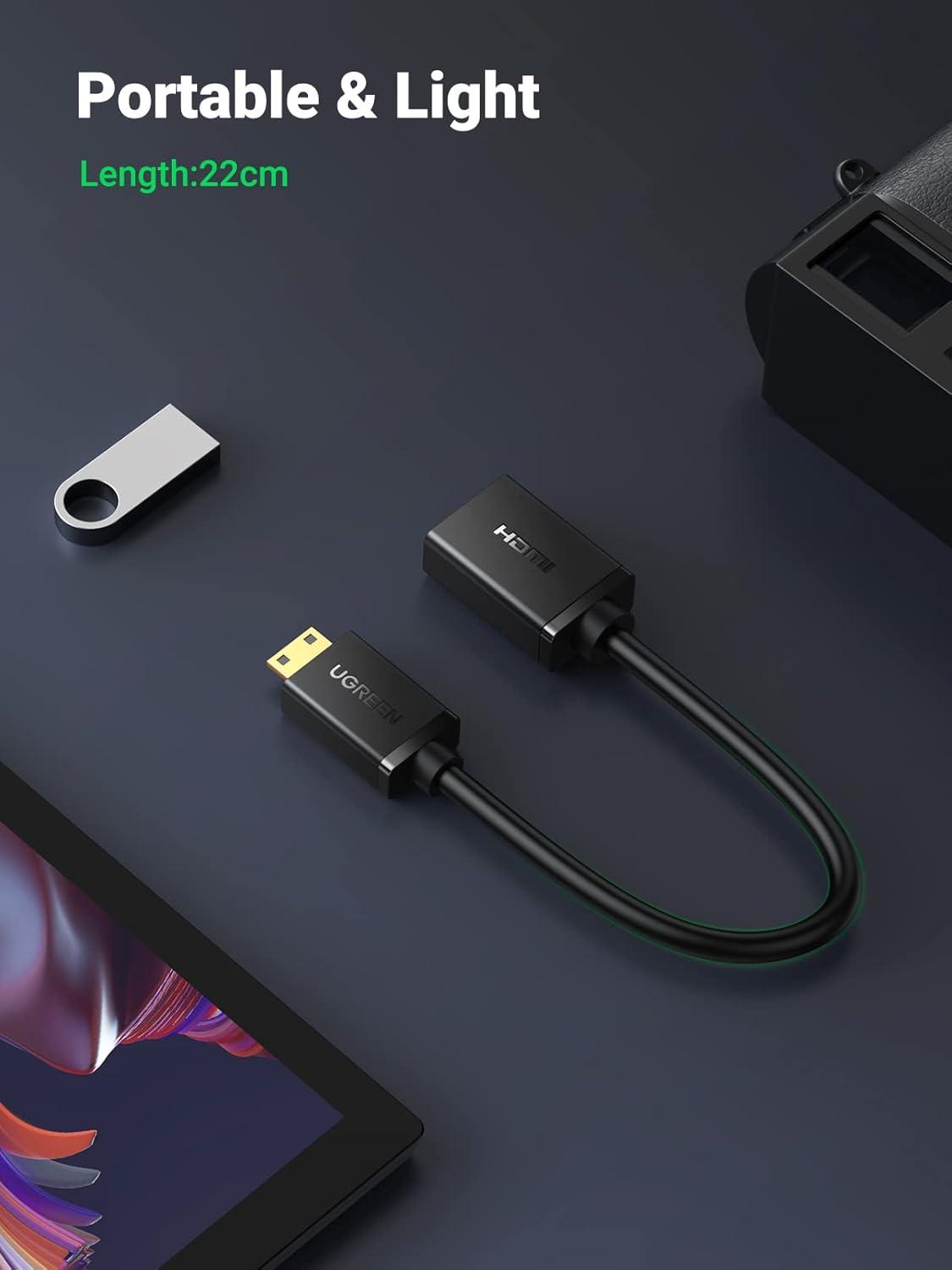 Mini HDMI to HDMI Adapter: NOTE: Please make sure your device has Mini HDMI Port. UGREEN HDMI to mini HDMI adapter converter easily converts mini HDMI 2.0 port on your laptop, camcorder, camera, or even some tablet to a standard HDMI Type A interface on TV, portable monitor, or projector. Compact and Portable