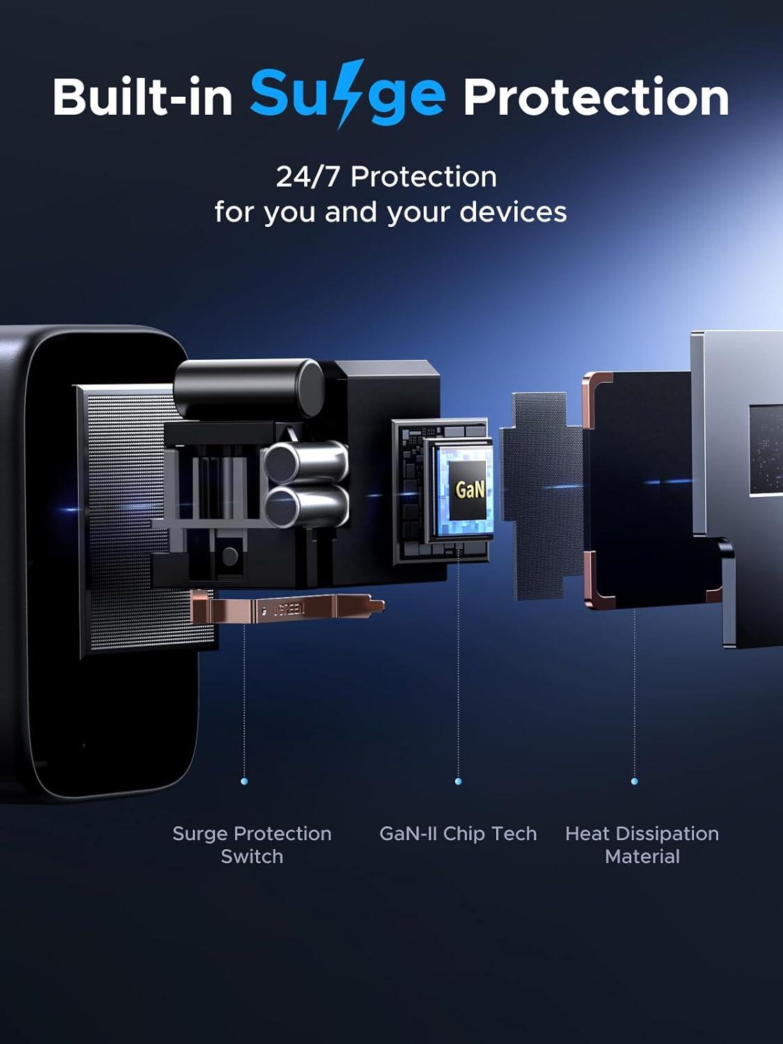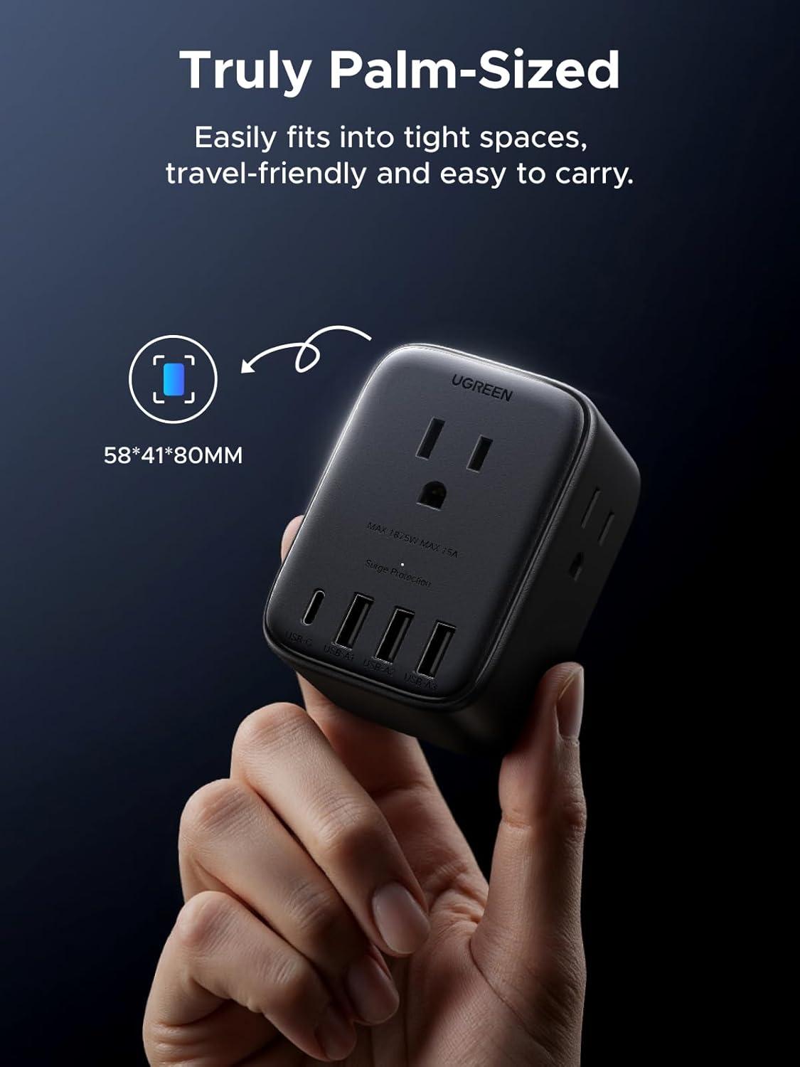 20W Max PD Power, GaN Enhanced: This compact UGREEN multi plug outlet extender supports up to 20W PD fast charging, powering your iPhone 17/16 to 54% in just 30 minutes. Equipped with an advanced GaN II chip, it ensures faster charging with better heat control and enhanced safety.