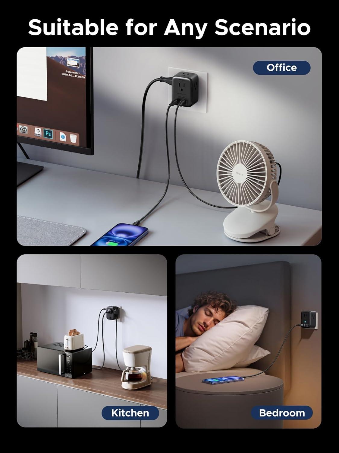 Compact, Reliable, Ready Anywhere: Sleek, space-saving, and travel-friendly—this power strip fits easily into bags or tight spaces, making it ideal for home, office, hotel rooms, or wherever you need extra power within reach.