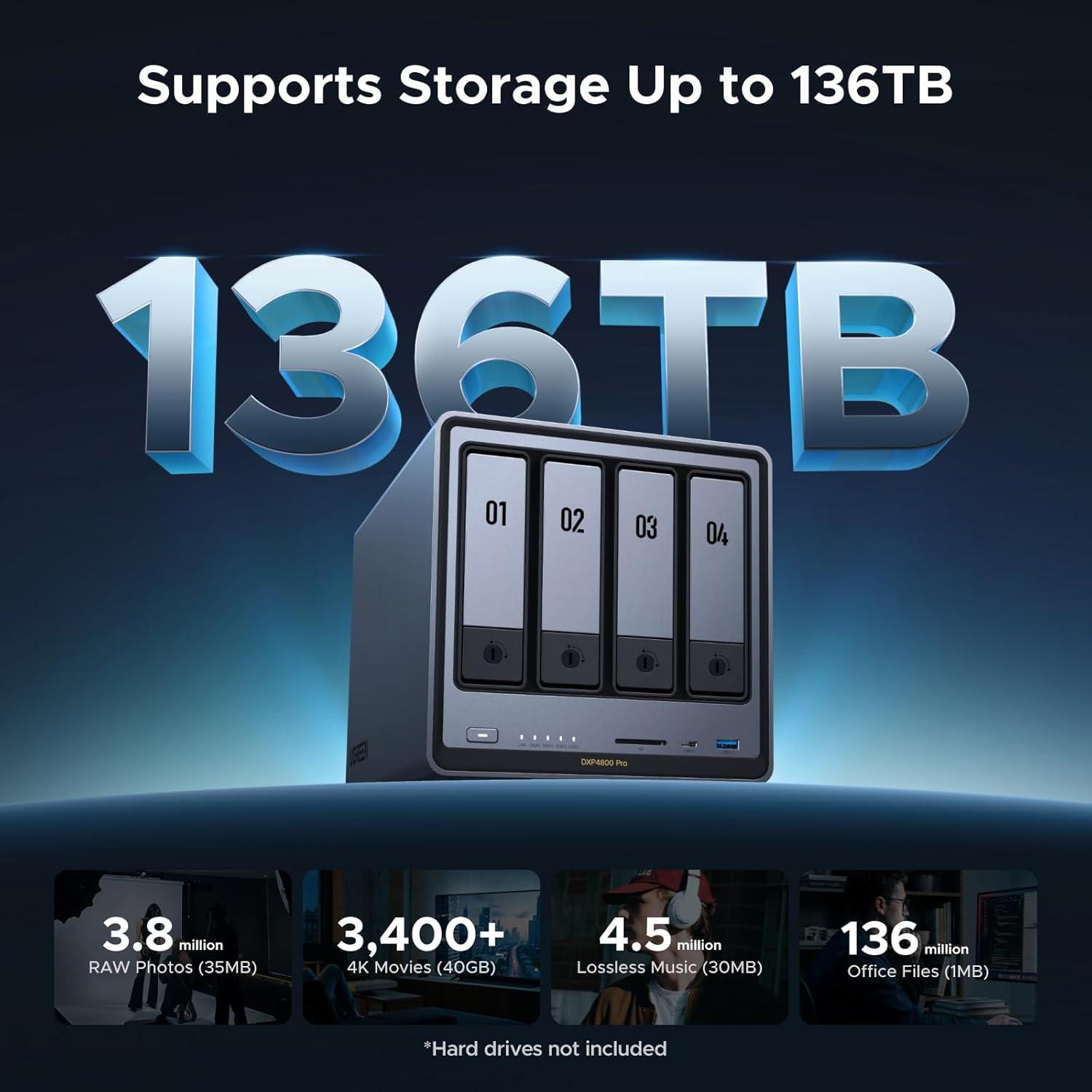 Better Way to Store Than External Drives: NAS offers centralized storage, automatic backups, remote access, and a wide range of RAID options for easy data recovery even if a drive fails. Massive Storage Capacity: Never worry about storage limits again. With up 136TB capacity, you can store 47 million photos or 92,000 movies! *Hard Drives not included.
