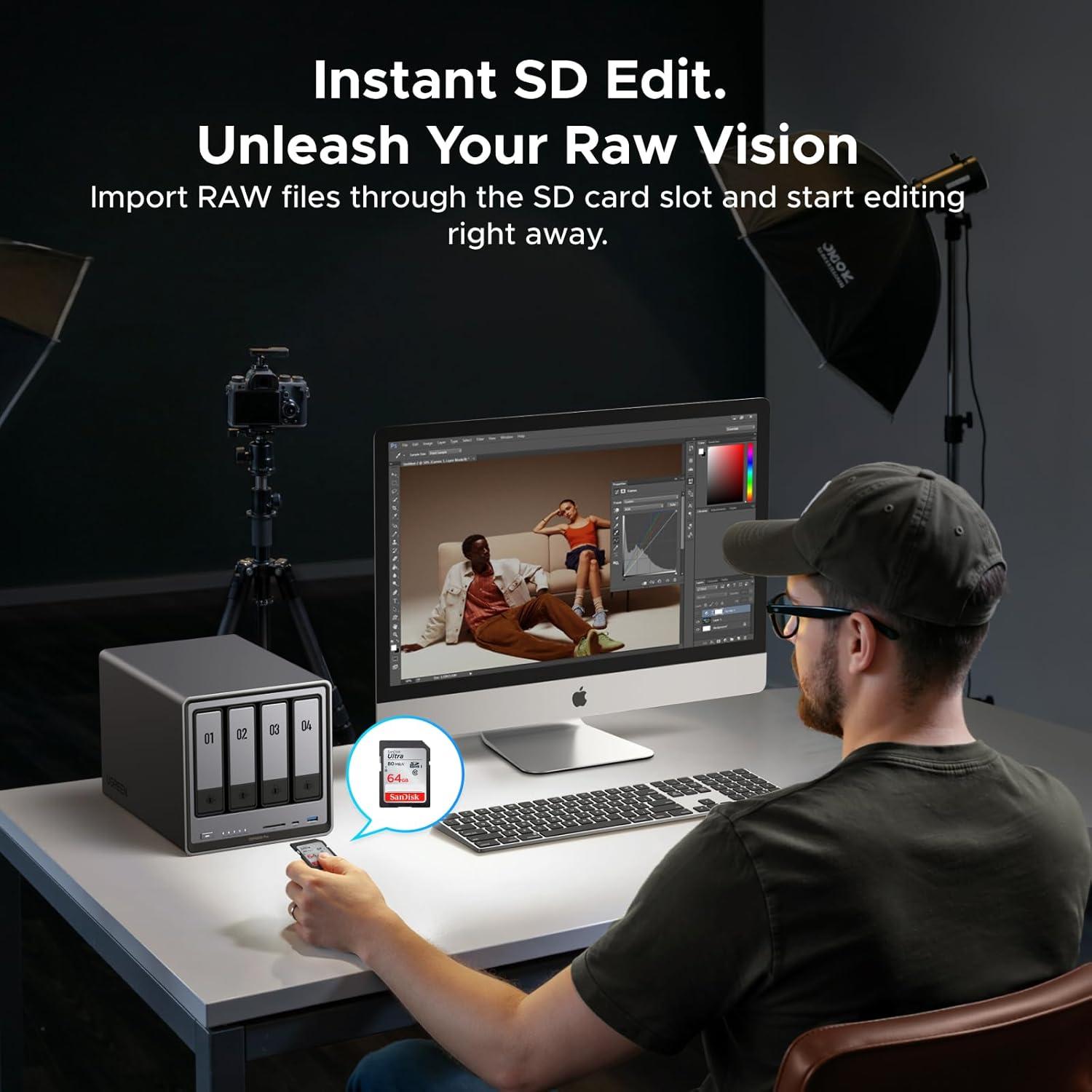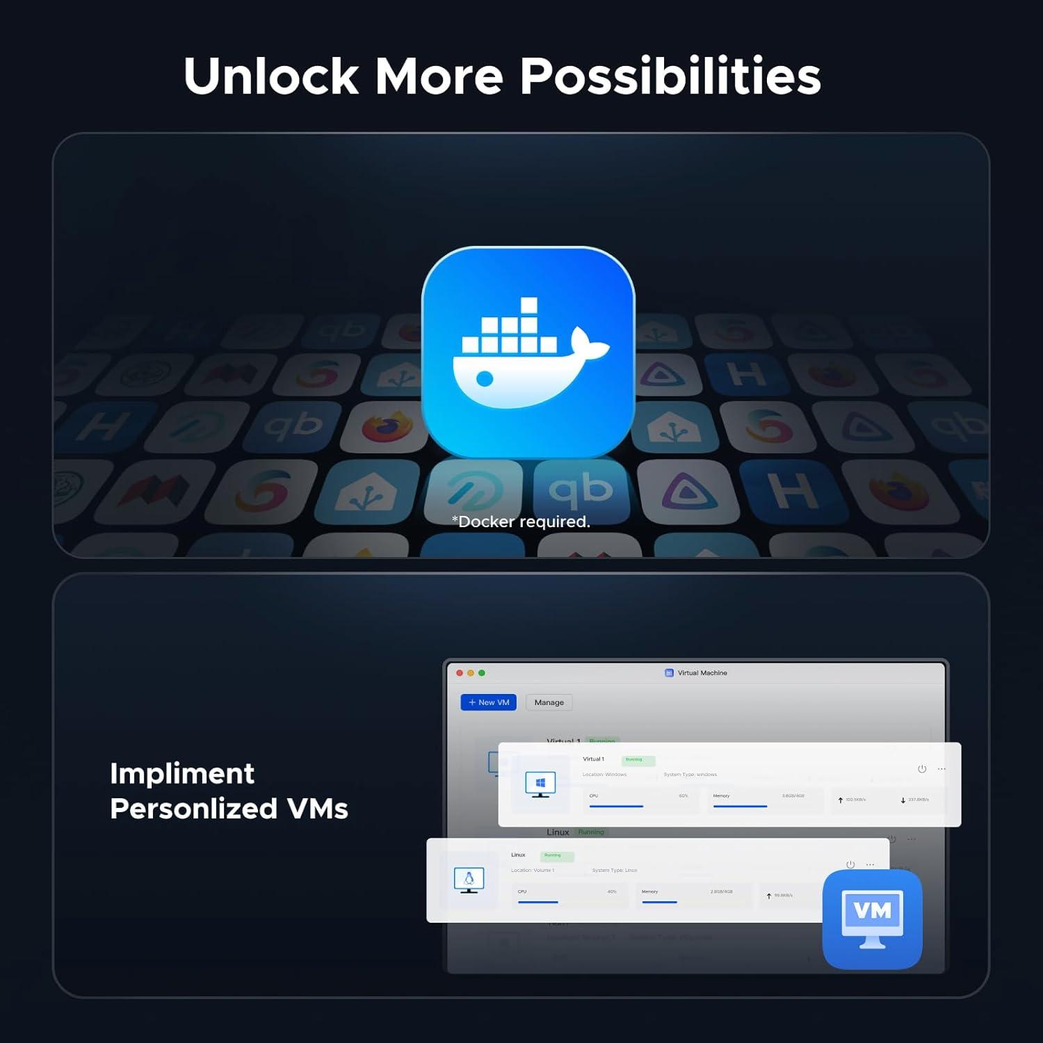 High-Performance NAS with Powerful Procesor: DXP4800 Plus is ideal for small offices, & More. You can enjoy smooth performance and seamless collaboration, while making use of advanced features like Docker and virtual machines. It works semalessly across every device inluding Windows, macOS, Linux, iOS, Android or Google services and so on.