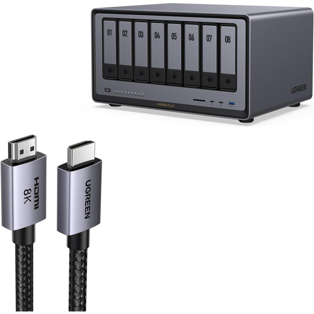 UGREEN NASync DXP8800 8-Bay Desktop NAS,Network Attached Storage (Diskless) Bundle with 8K HDMI 2.1 Cable Certified 6.6FT