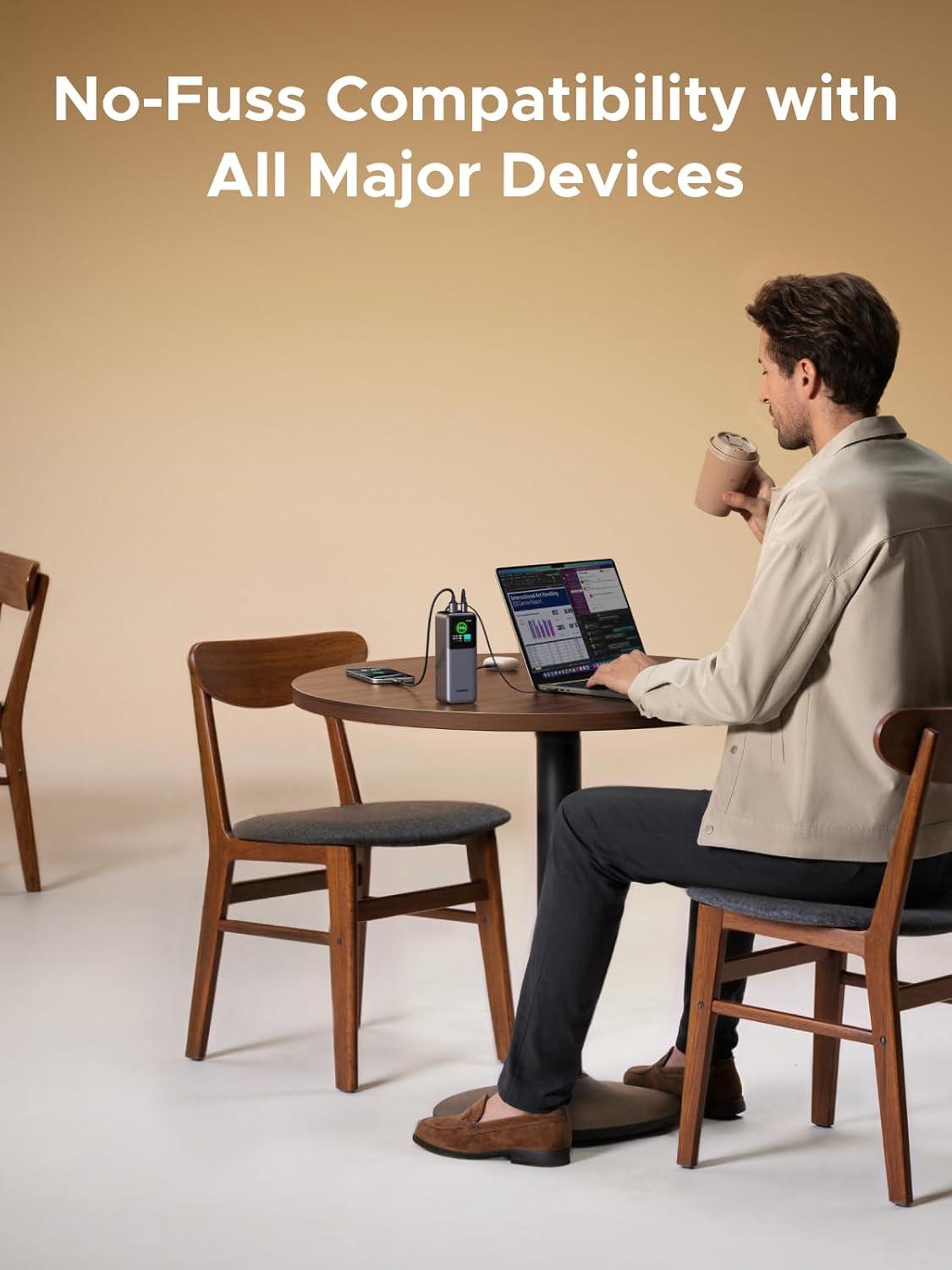165W Max Output – Dual Device Power Without Compromise: Charge your MacBook Pro and iPhone simultaneously with 100W + 65W output. Efficiently handle multitasking between devices during intense workdays, from presentations to back-to-back Zoom calls.