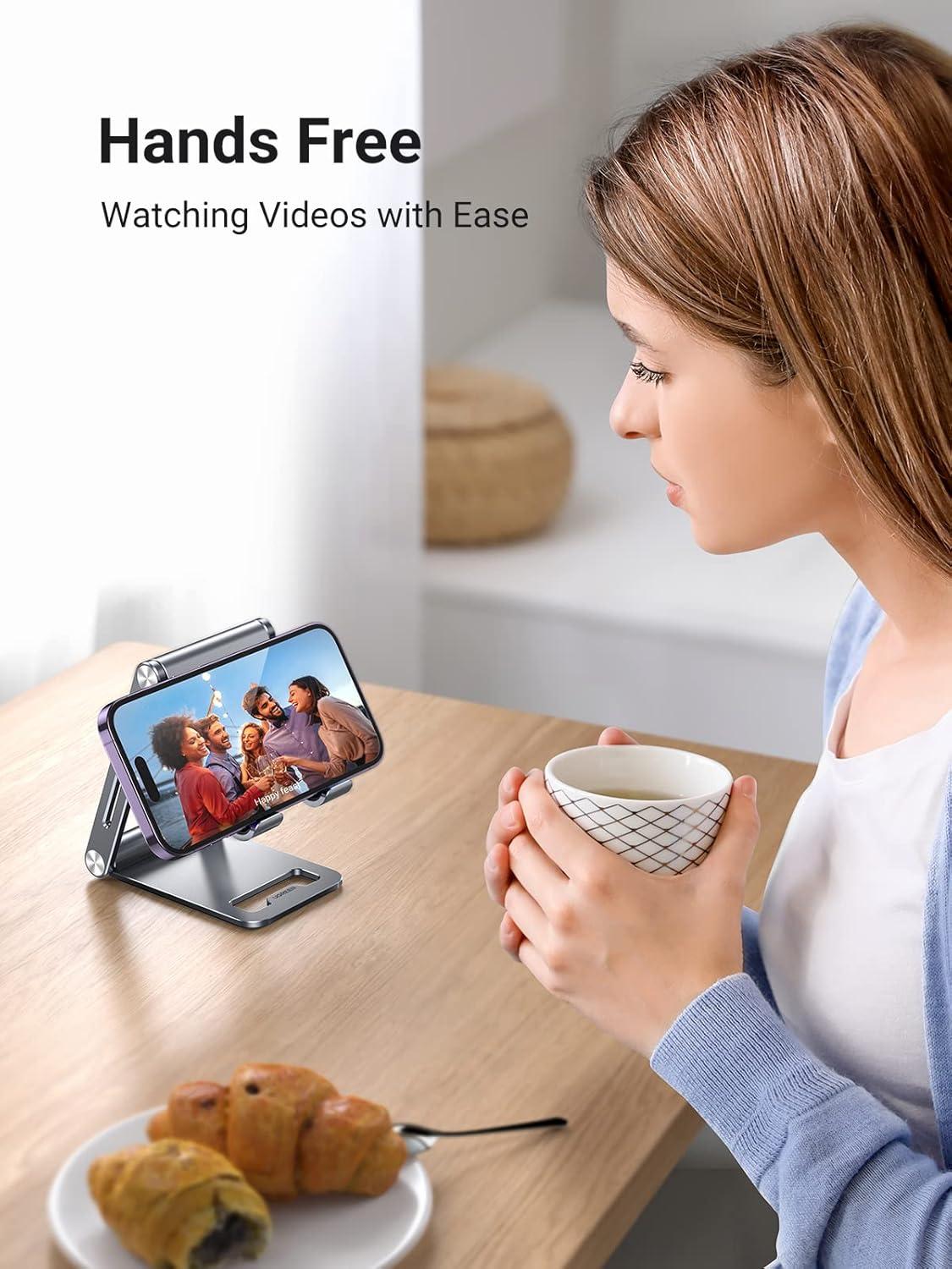 UGREEN Phone Stand for Desk Cell Phone Holder Adjustable Compatible with iPhone 17 Air/16/15/14/13 Pro Max/12 Mini/11/XS Max/XR/X/Nintendo Switch, Aluminum Metal Desktop Stand Portable, Space Grey(Space Grey)
