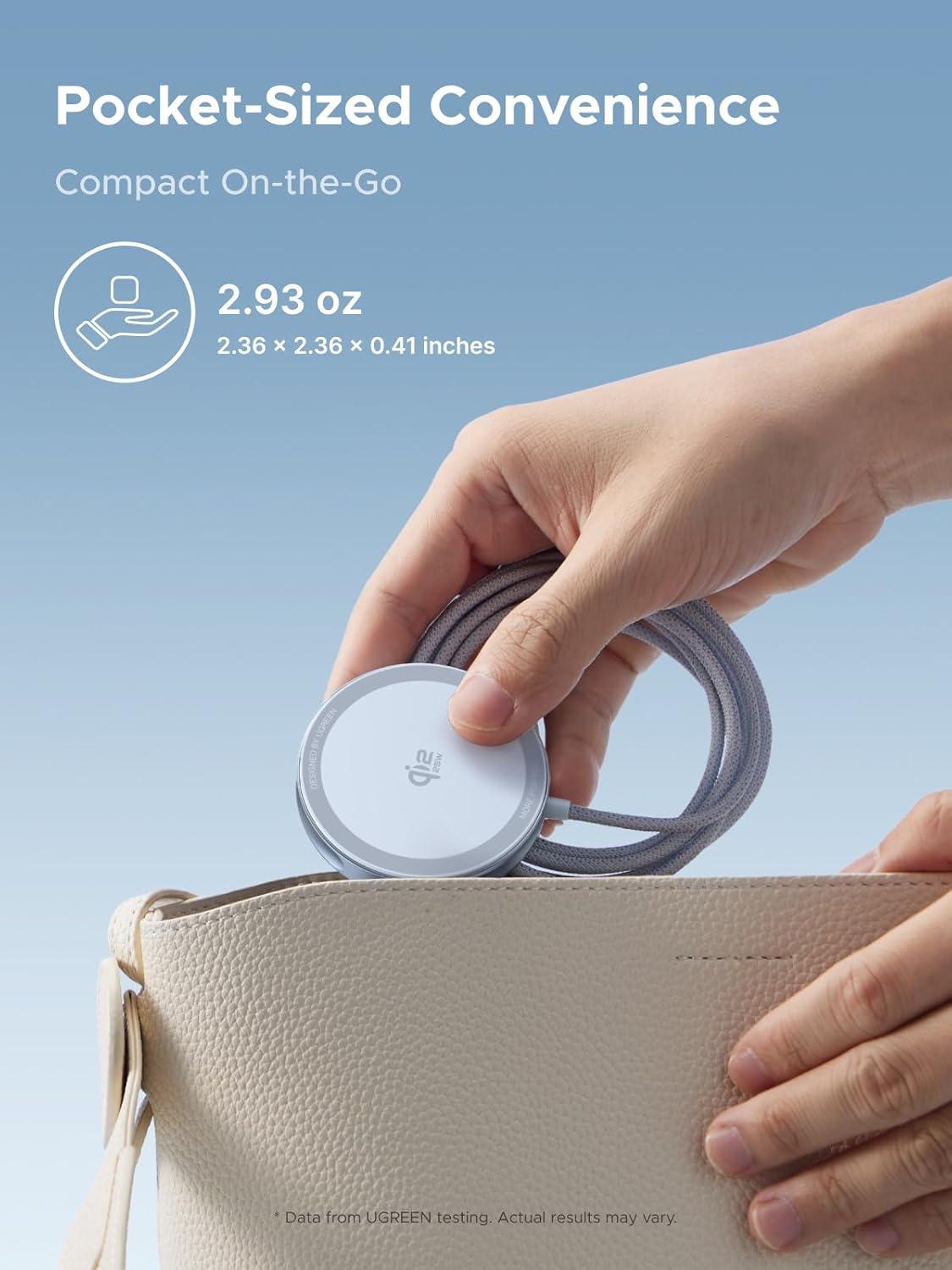 Ultra-Portable for Everyday Use: With a 5 FT extendable cable, compact size (2.36 x 2.36 x 0.41 inches) and light weight (2.93 oz), this wireless charger is ideal for nightstand, office or travel, and it is convenient to use your iPhone while charging