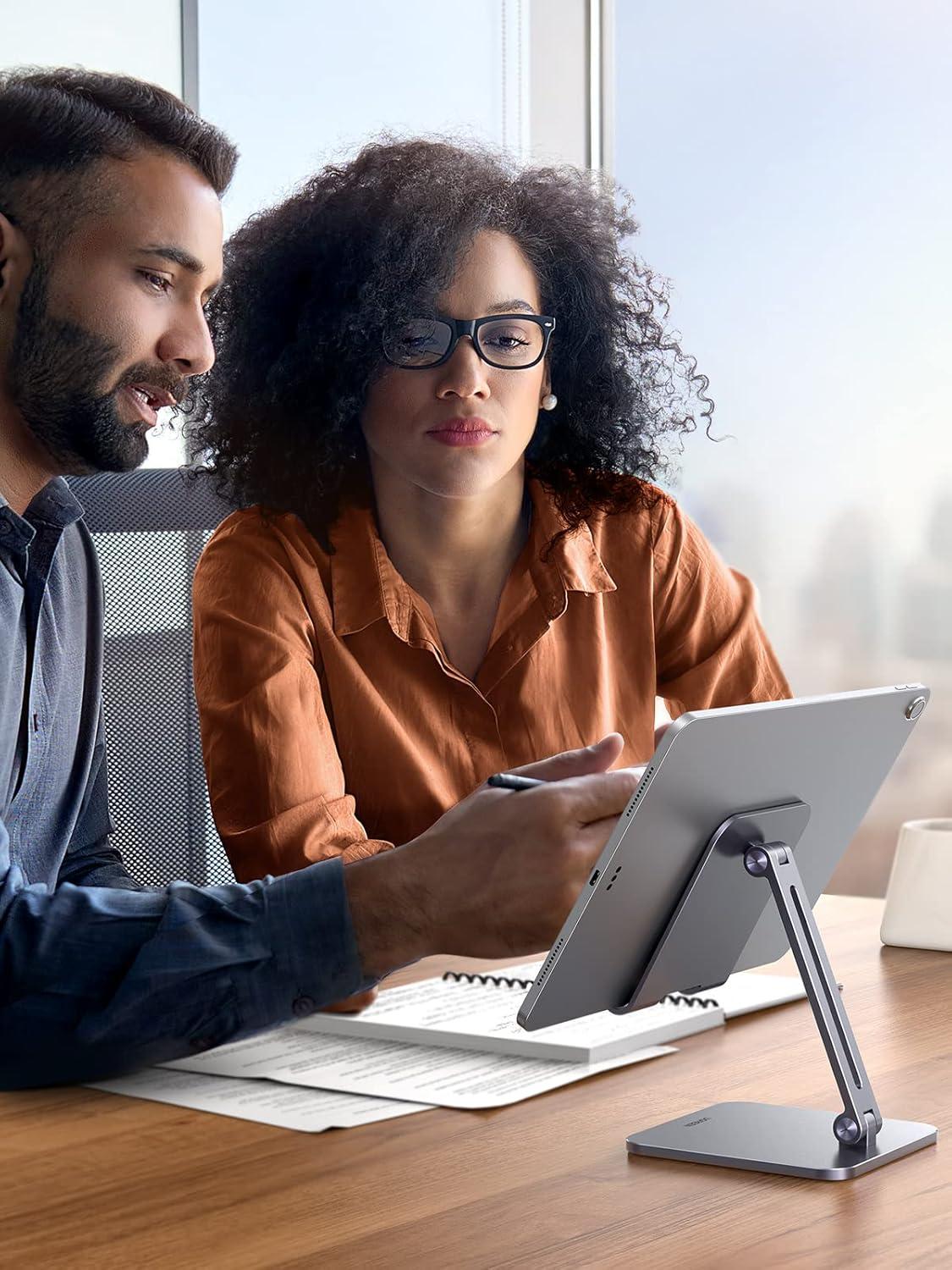 UGREEN Tablet Stand Compatible for iPad Desk Stand Holder Adjustable Aluminum Thicker Base Compatible with iPad Pro Air Mini 13 12.9 11 Inch Home Office Desk Accessories Grey(Grey)