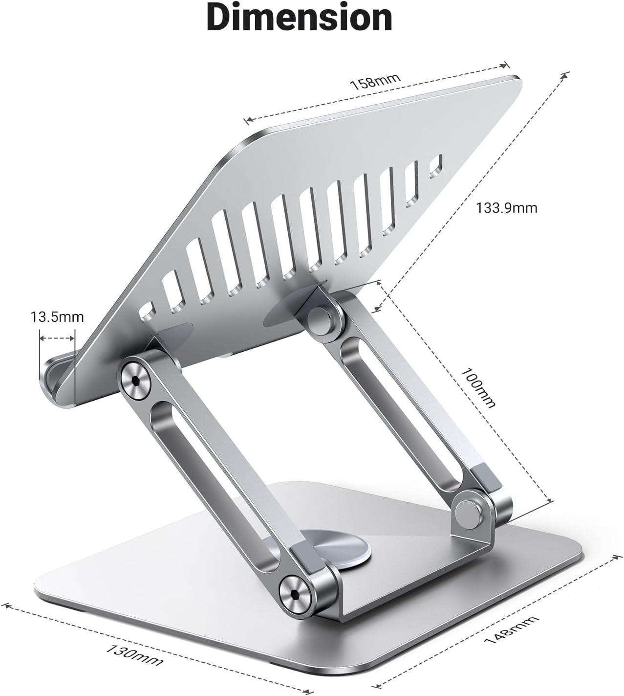 UGREEN Tablet Stand Holder for Desk with 360° Rotating Base Aluminum Dual Rod Support Adjustable Home Office Accessories Compatible with iPad Pro 13 12 11 Air Mini 5 4 3 Phone E-Reader Silver