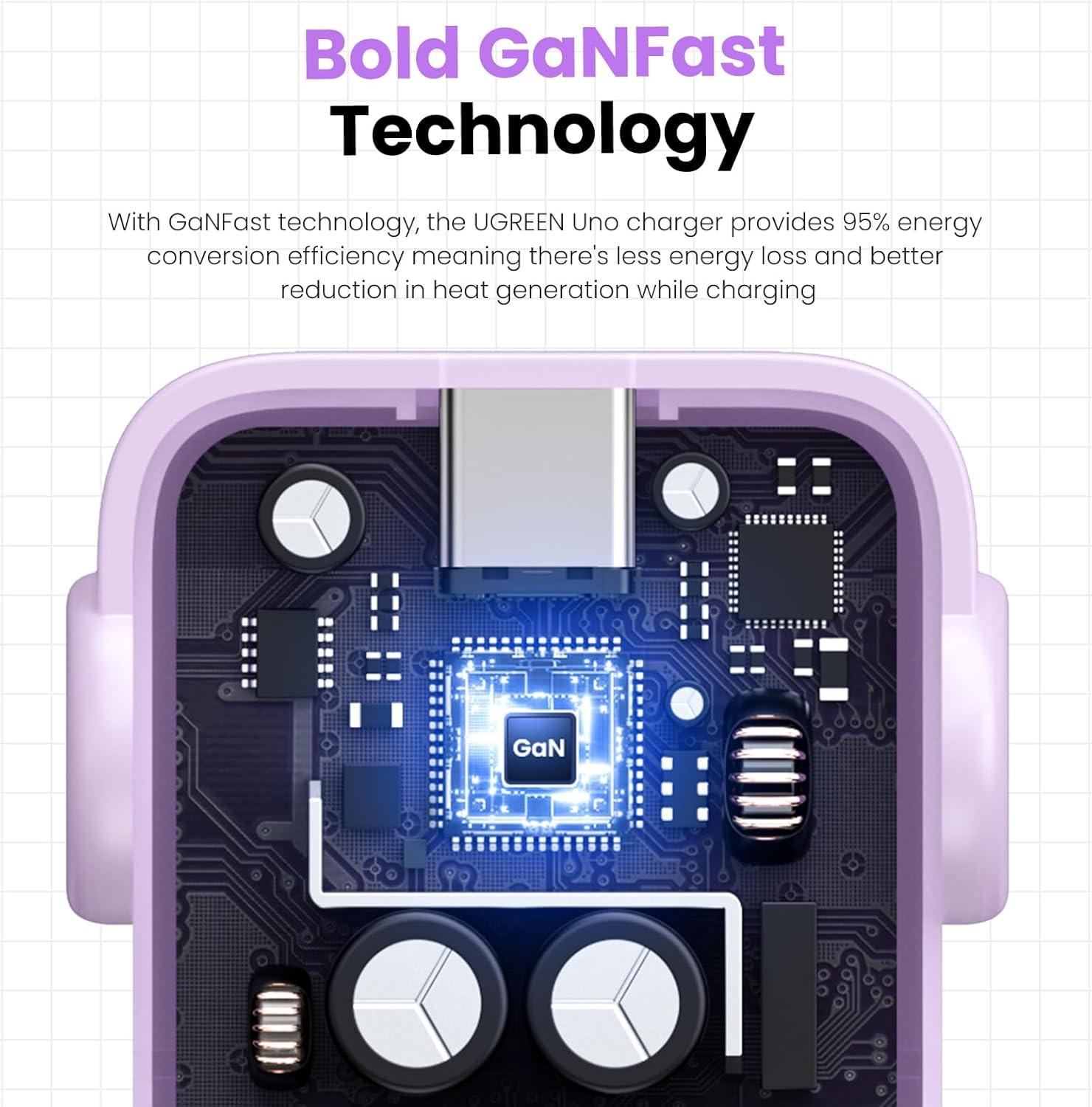 UGREEN Uno 65W USB C Charger Block, Nexode 3-Port GaN Fast Charger with Screen, Fun Robot Gifts for Men Women, Compatible with iPhone 17, MacBook Pro/Air, XPS, Galaxy S25, Steam Deck, ROG Ally, Black(Purple)