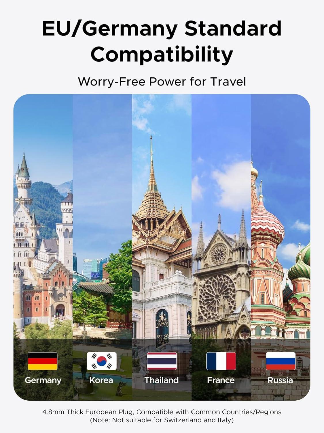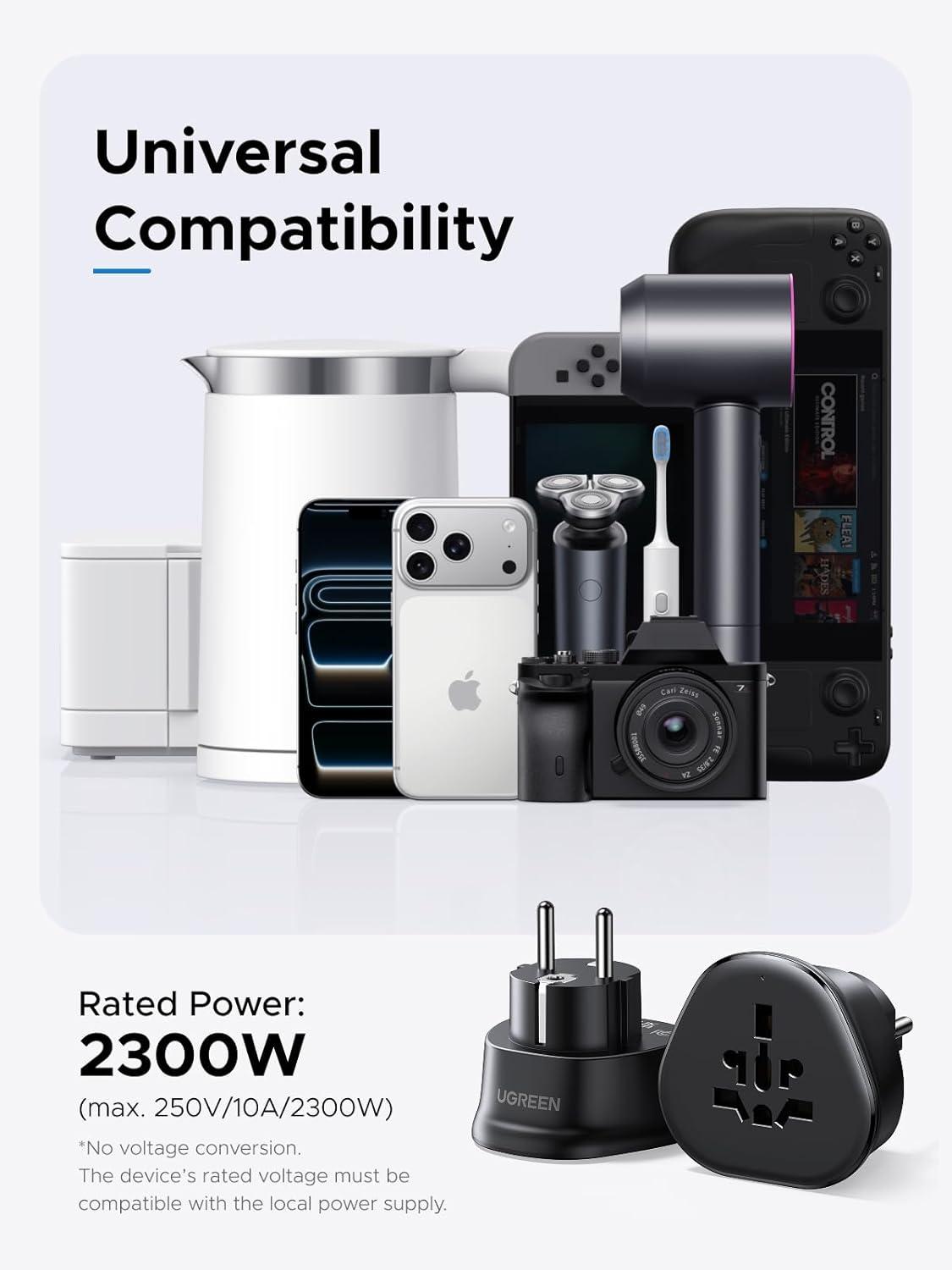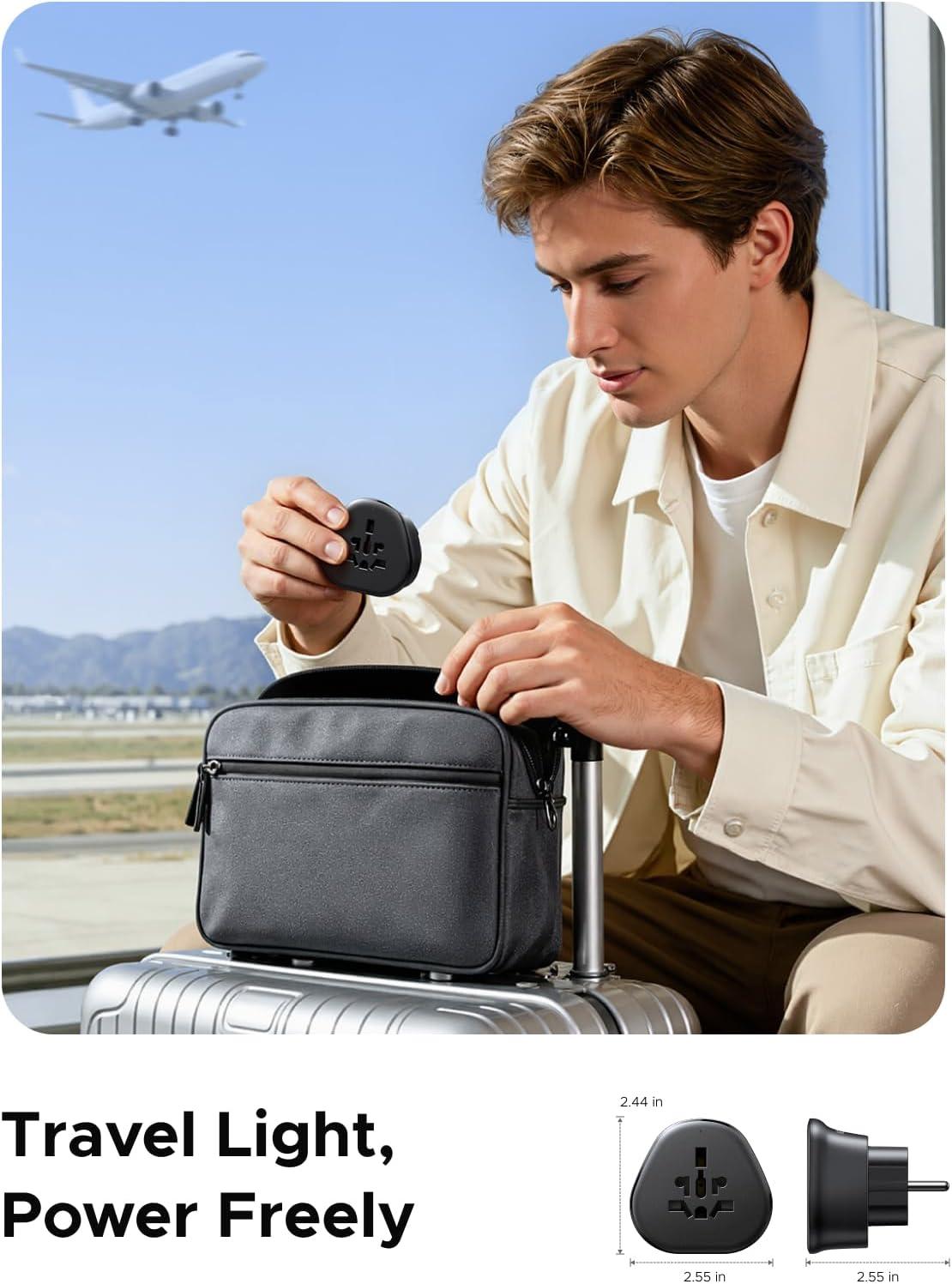 Compact & Travel-Friendly: Measuring only 2.55 × 2.55 × 2.44 inches and weighing just 3.6 oz, this travel adapter is easy to carry for both vacations and business trips. Slip it into your backpack or handbag without taking up extra space and enjoy worry-free power wherever you go