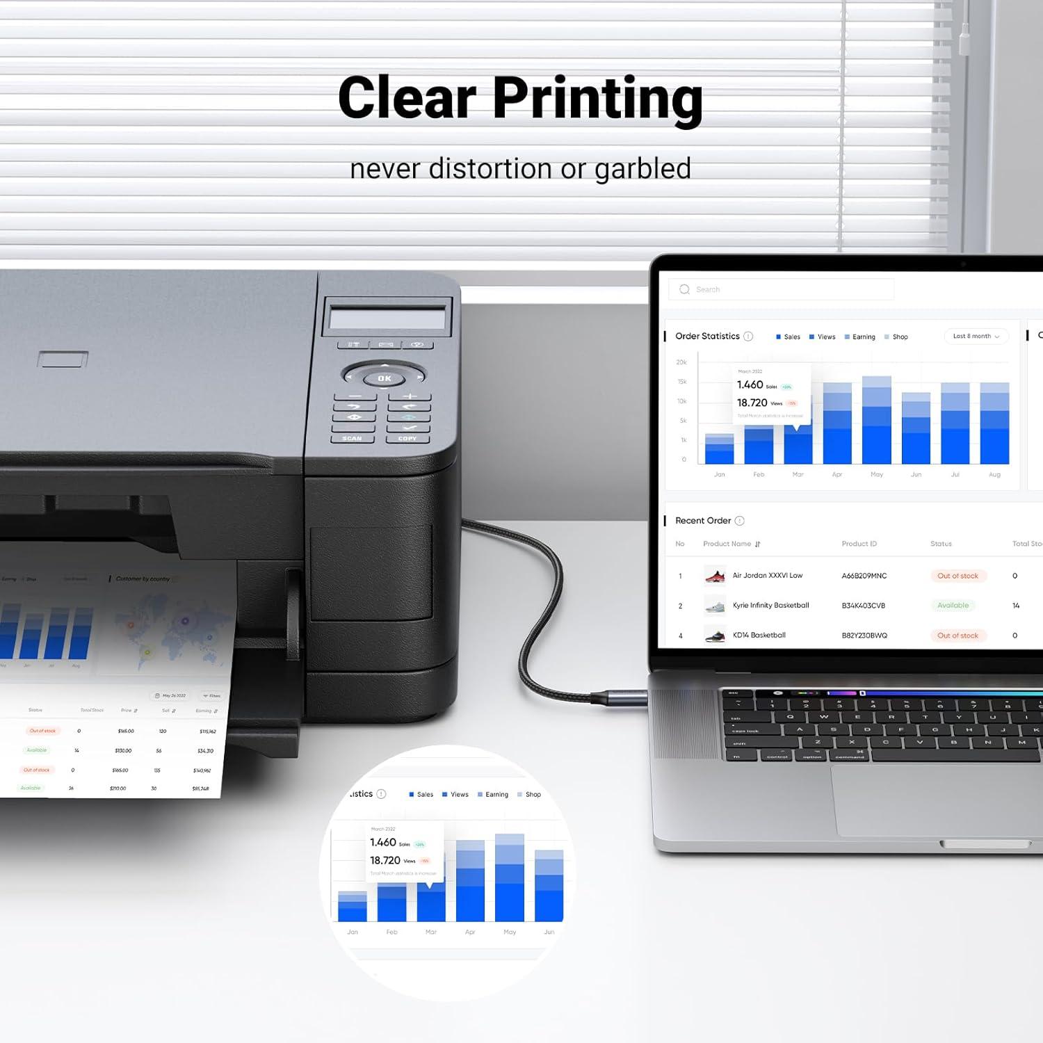 Unrivaled Durability: The USB C printer cable features a nylon-braided fiber jacket for improved corrosion-resistance, molded strain relief and premium aluminum housing, bend and twist this cable freely 3000+ times and enjoy a more durable, longer cable lifespan.
