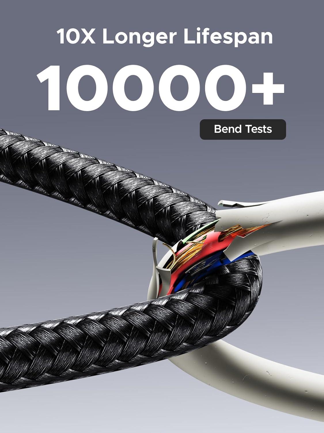 Extremely Durable Design: 24-strand high-density braided cable resists tearing and abrasion, space gray aluminum terminal blocks dissipate heat and prevent oxidation, PC lens protects the screen against scratches (factory-installed with protective film), and certified for 10,000-cycle bend testing