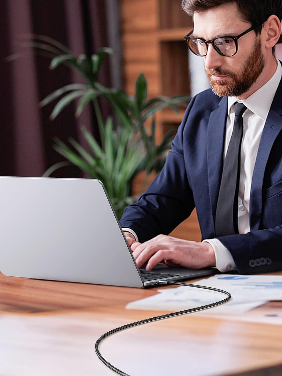 Durable Braided Design: The 100W USB C charger cable has aluminum housing, nylon braiding and 250d fiber core which keeps the cable from fraying or splitting while exposed to over 10,000 ninety degree bends or turns