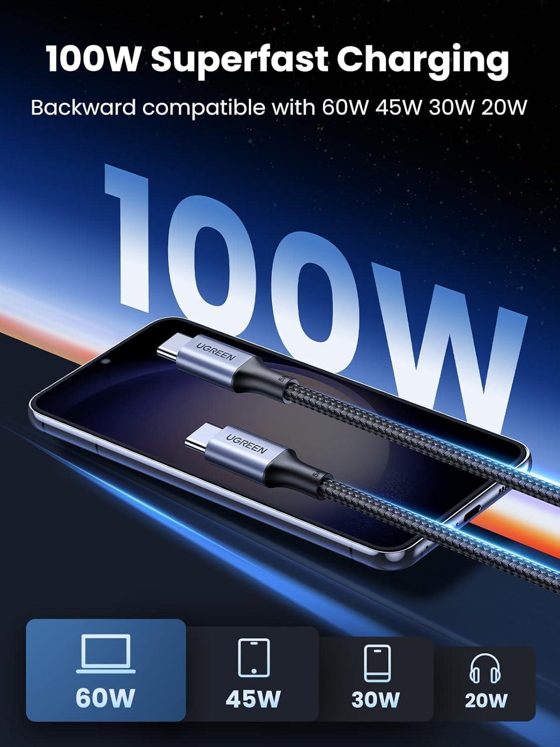 UGREEN USB C to USB C Cable, 100W 2-Pack USB C Charger Cable for iPhone 17/17 Air/17 Pro/17 Pro Max, MacBook Pro, iPad Pro, Dell XPS, Samsung Galaxy S25/S24/S23 Ultra, Switch, Pixel, 10FT Black(Black)