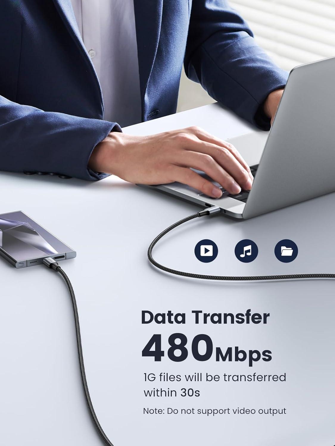 Super Fast Data Transfer: This type c data cable transfers data at up to 480Mbps to quickly transfer 1GB movies, music, documents or entire photo libraries in less than a minute