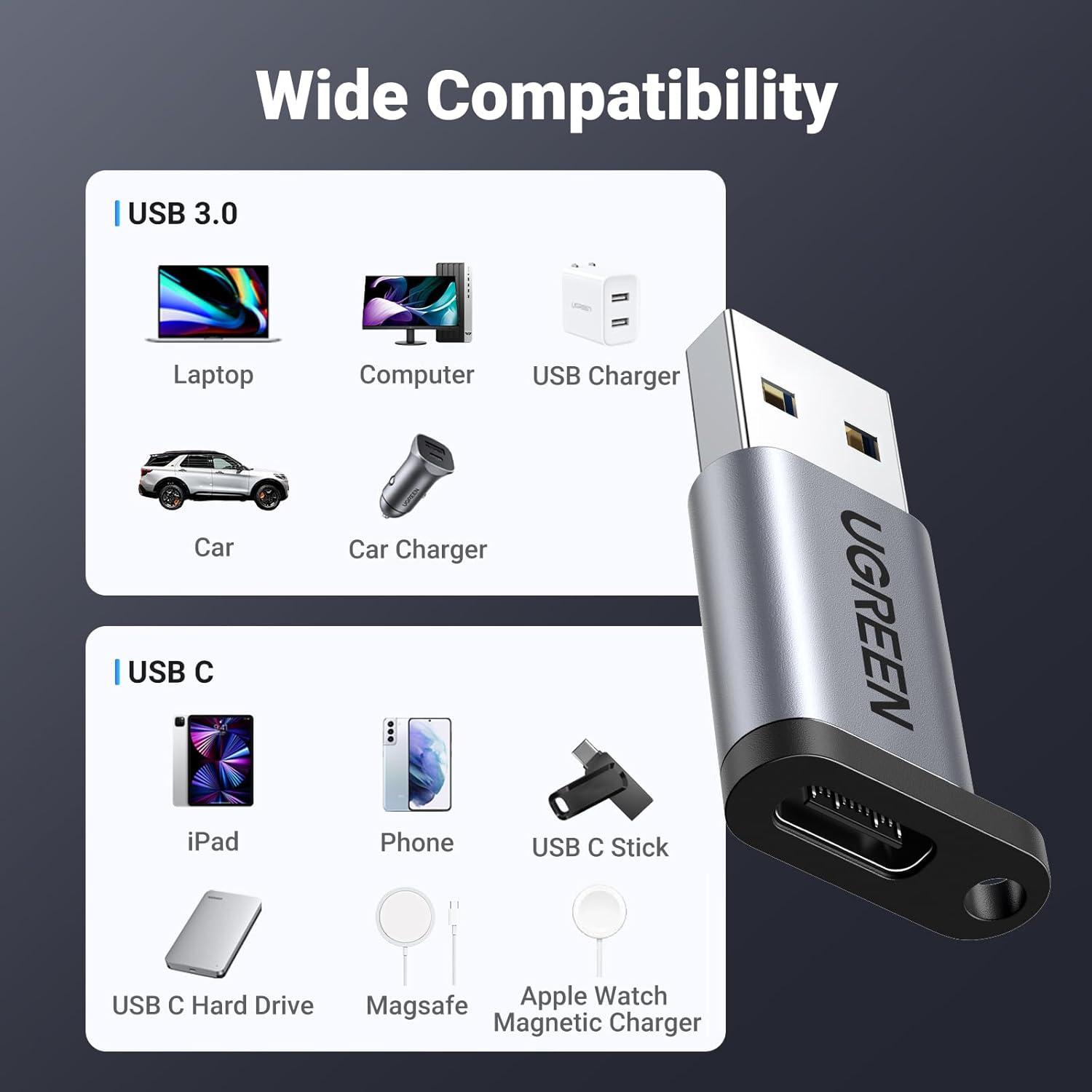 UGREEN USB to USB C Adapter 2 Pack,10Gbps USB C Female to USB Male Adapter Thunderbolt Compatible with iPhone 16 15, MacBook, iPad, Samsung Galaxy,Apple MagSafe Watch 9/8