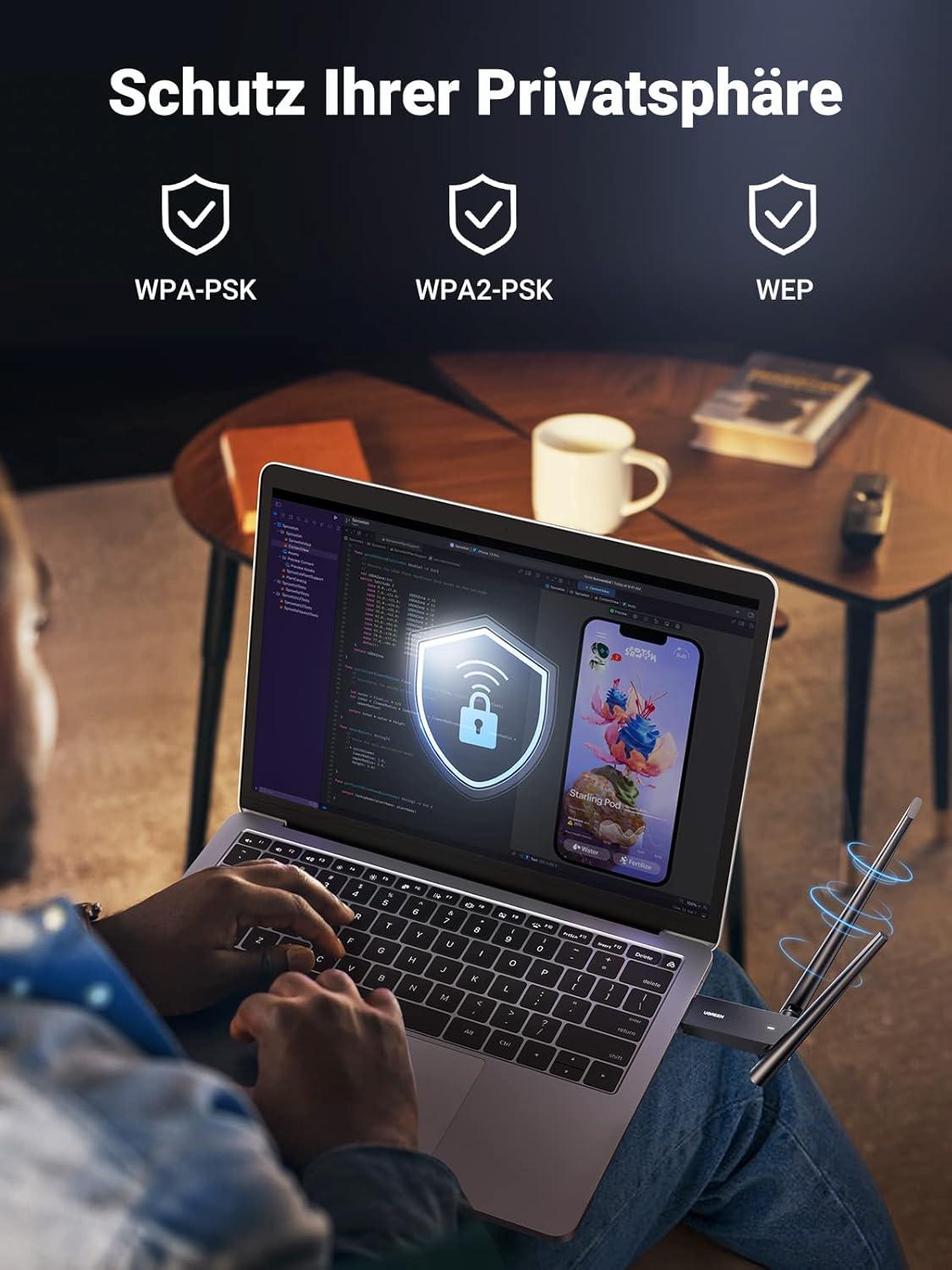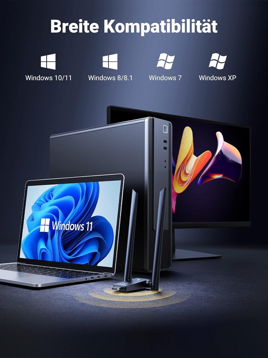 Widely Compatible: UGREEN PC WiFi adapter is compatible with Windows 11/10/8.1/8/7, which can meet the needs of most computers. (Doesn't support the Macbook).