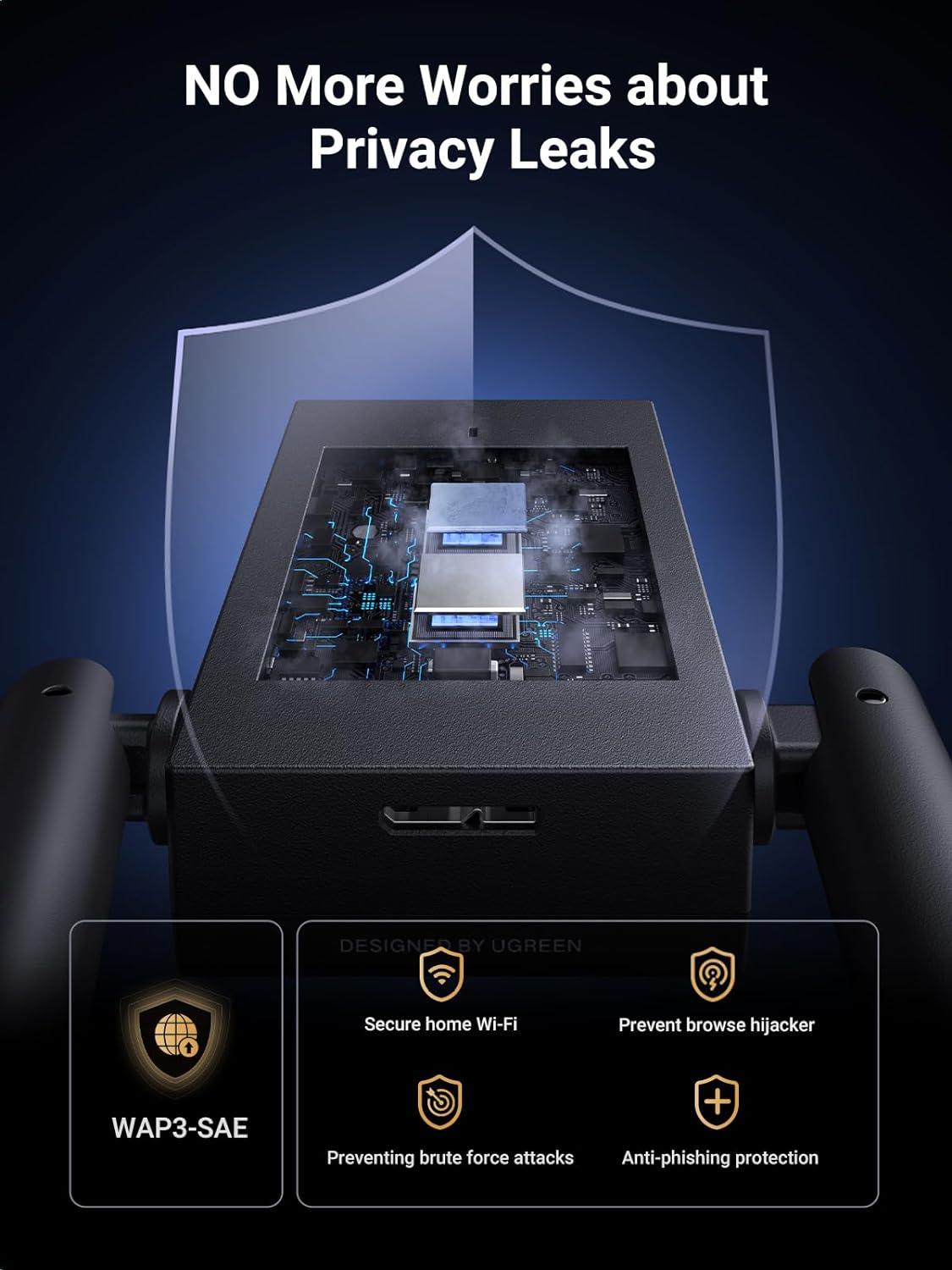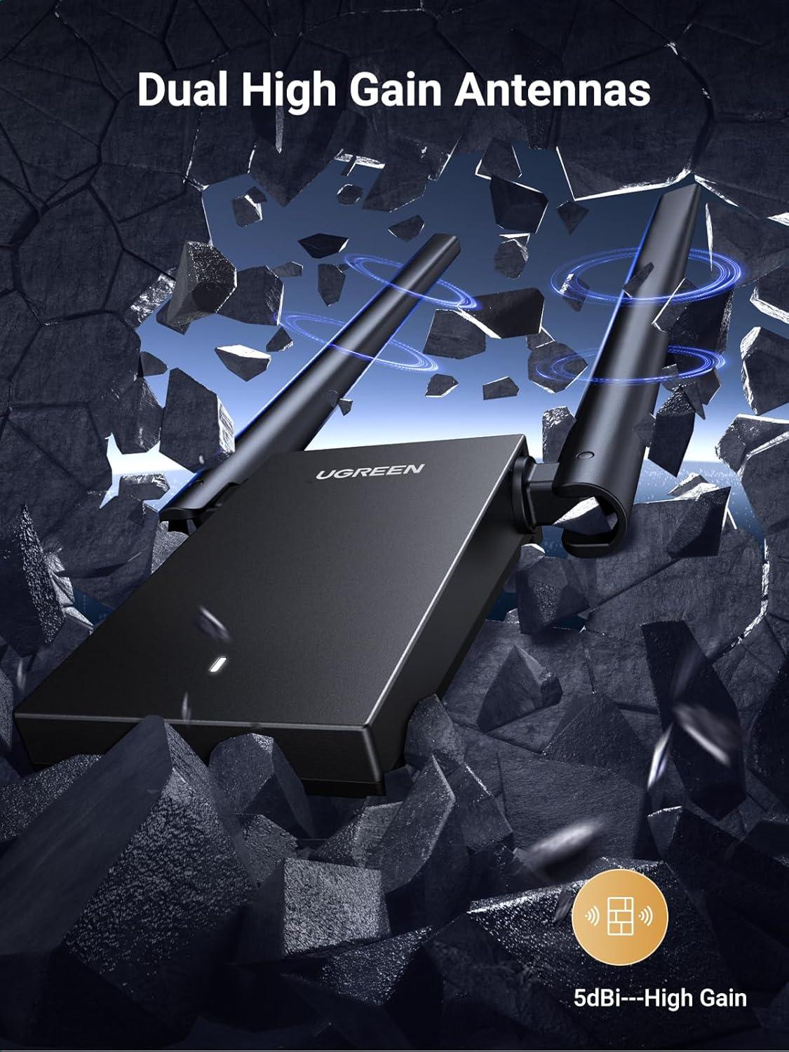 UGREEN WiFi Adapter, AX1800 WiFi 6 Adapter for Desktop PC with Dual 5dBi High Gain Antennas, 5G/2.4G Dual Band, WAP3-SAE, 3FT USB 3.0 to Micro USB 3.0 Cable, WiFi Dongle Supports Windows 10/11
