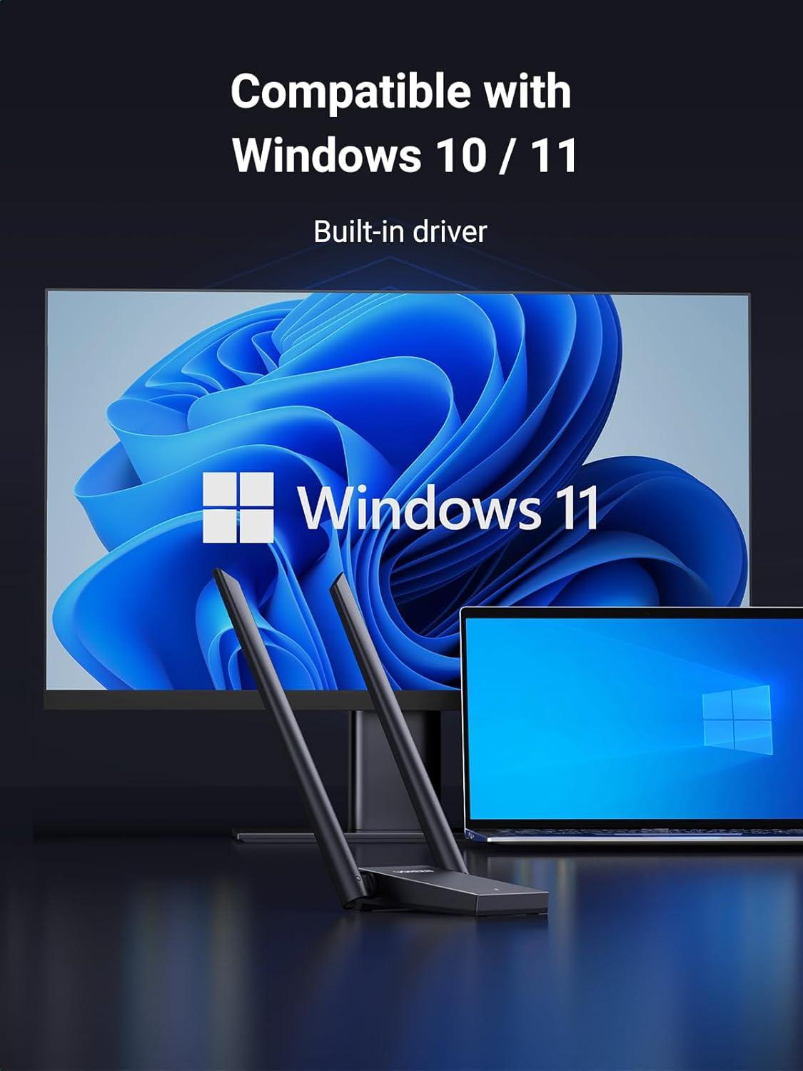 Built-in Driver: The USB WiFi 6 dongle supports Win 10/11 series desktop PCs and laptops, which comes with 3ft Micro USB 3.0 Cable and built-in driver. When connecting PC via the cable, it will show the driver automatically, which is easy to use